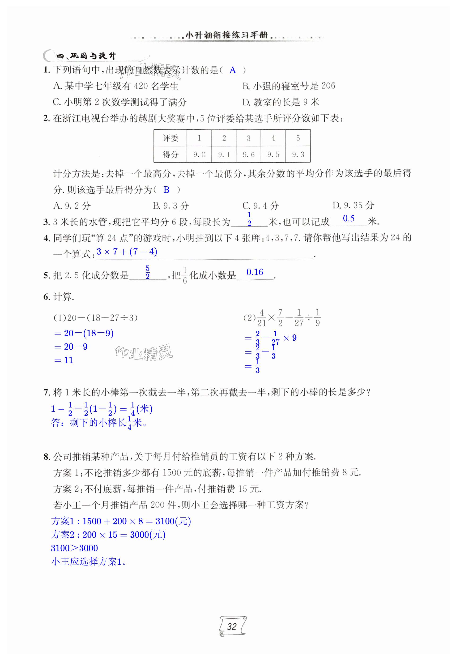 注:目前有些书本章节名称可能整理的还不是很完善,但都是按照顺序排列的,请同学们按照顺序仔细查找。练习册 2024年小升初衔接练习手册六年级数学.科学 答案主要是用来给同学们做完题方便对答案用的,请勿直接抄袭。
