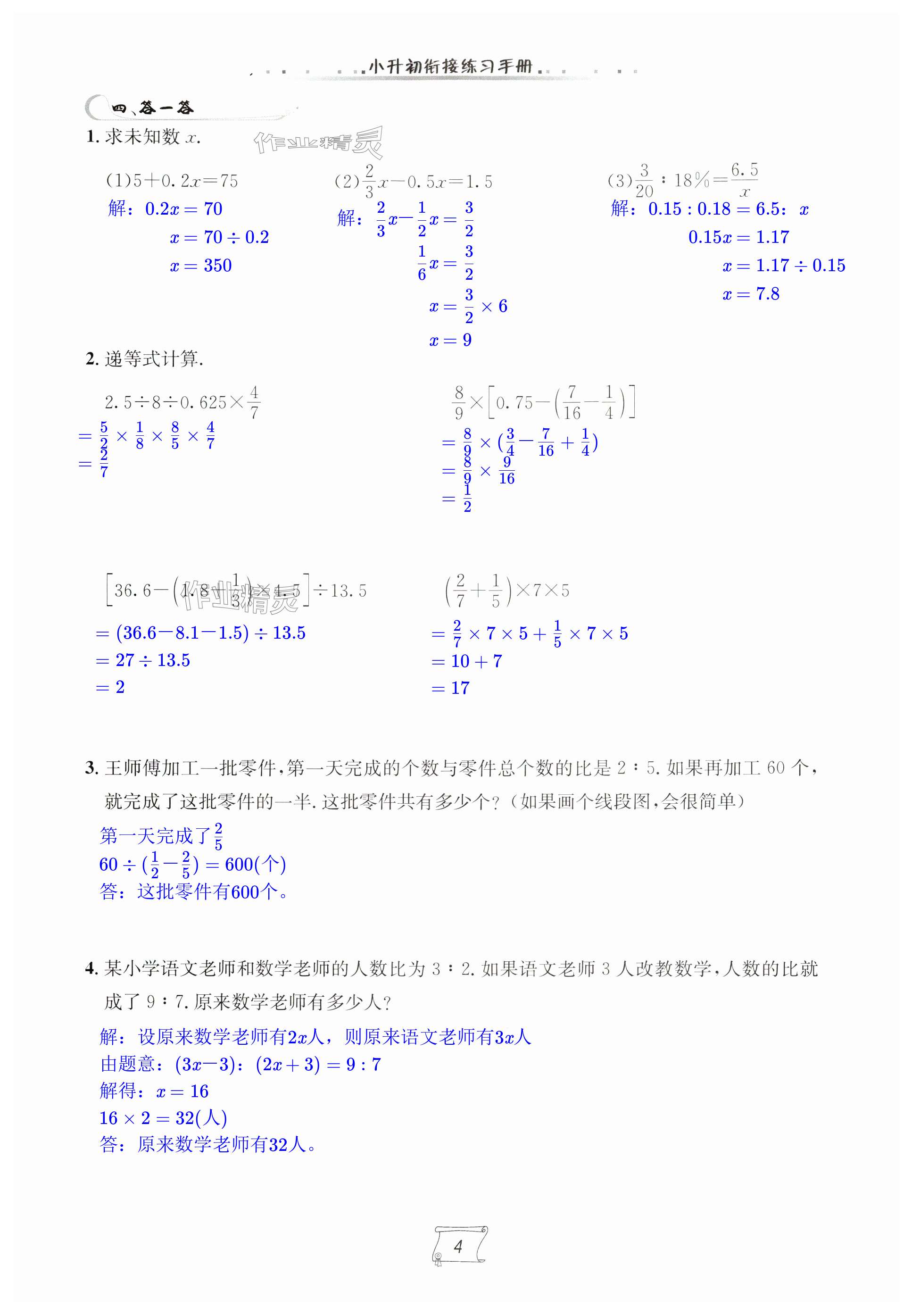 注:目前有些书本章节名称可能整理的还不是很完善,但都是按照顺序排列的,请同学们按照顺序仔细查找。练习册 2024年小升初衔接练习手册六年级数学.科学 答案主要是用来给同学们做完题方便对答案用的,请勿直接抄袭。