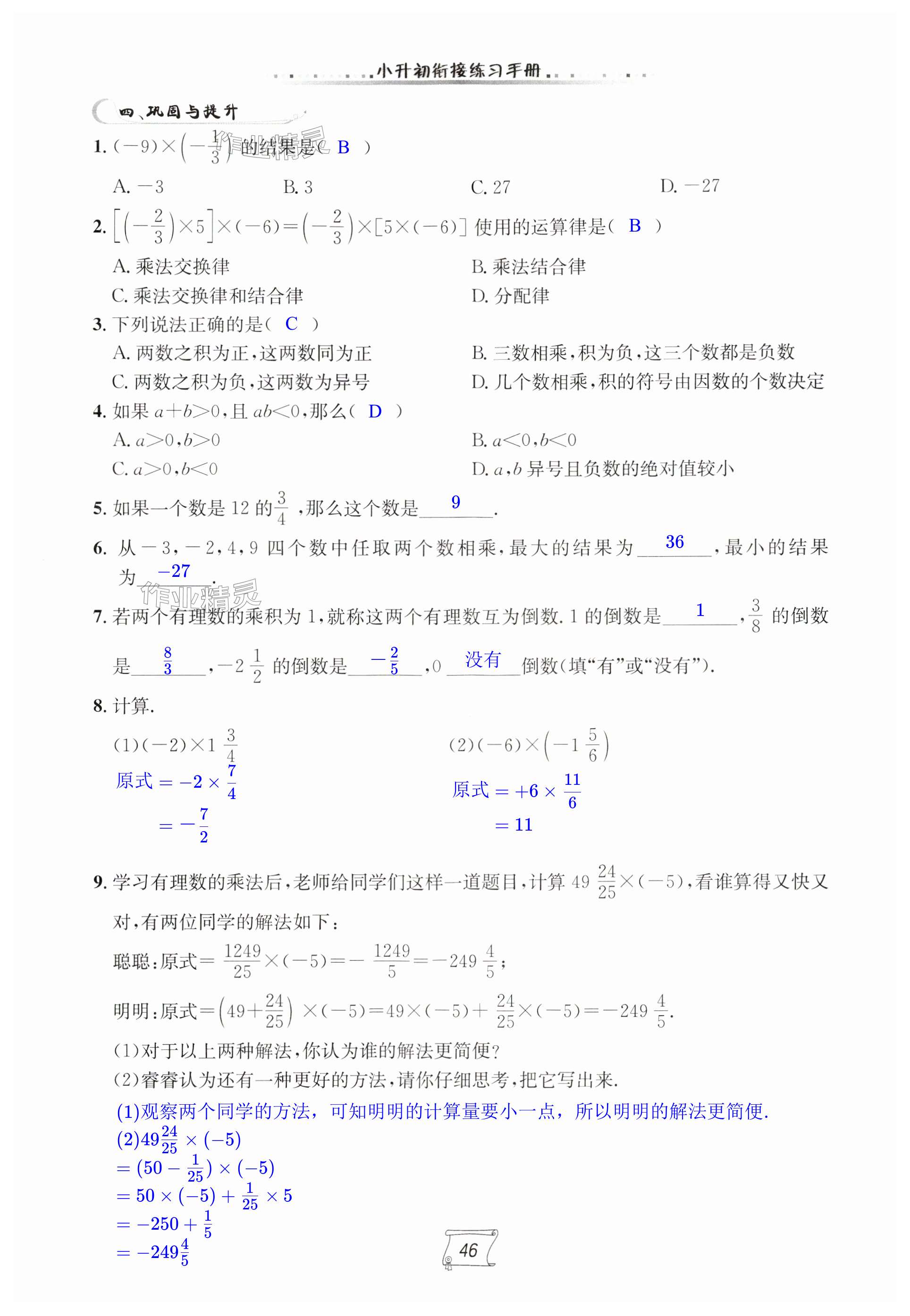 注:目前有些书本章节名称可能整理的还不是很完善,但都是按照顺序排列的,请同学们按照顺序仔细查找。练习册 2024年小升初衔接练习手册六年级数学.科学 答案主要是用来给同学们做完题方便对答案用的,请勿直接抄袭。