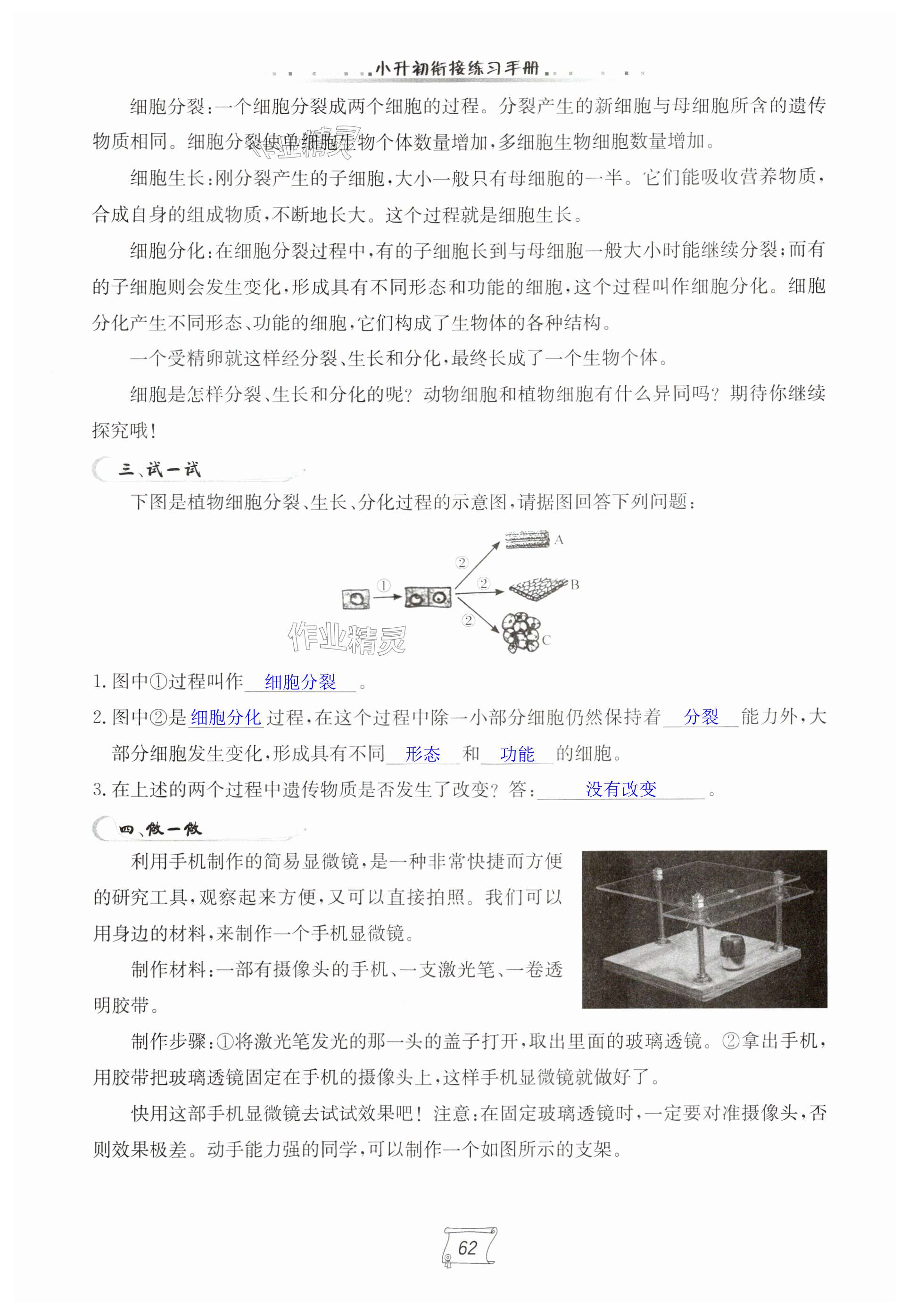 注:目前有些书本章节名称可能整理的还不是很完善,但都是按照顺序排列的,请同学们按照顺序仔细查找。练习册 2024年小升初衔接练习手册六年级数学.科学 答案主要是用来给同学们做完题方便对答案用的,请勿直接抄袭。