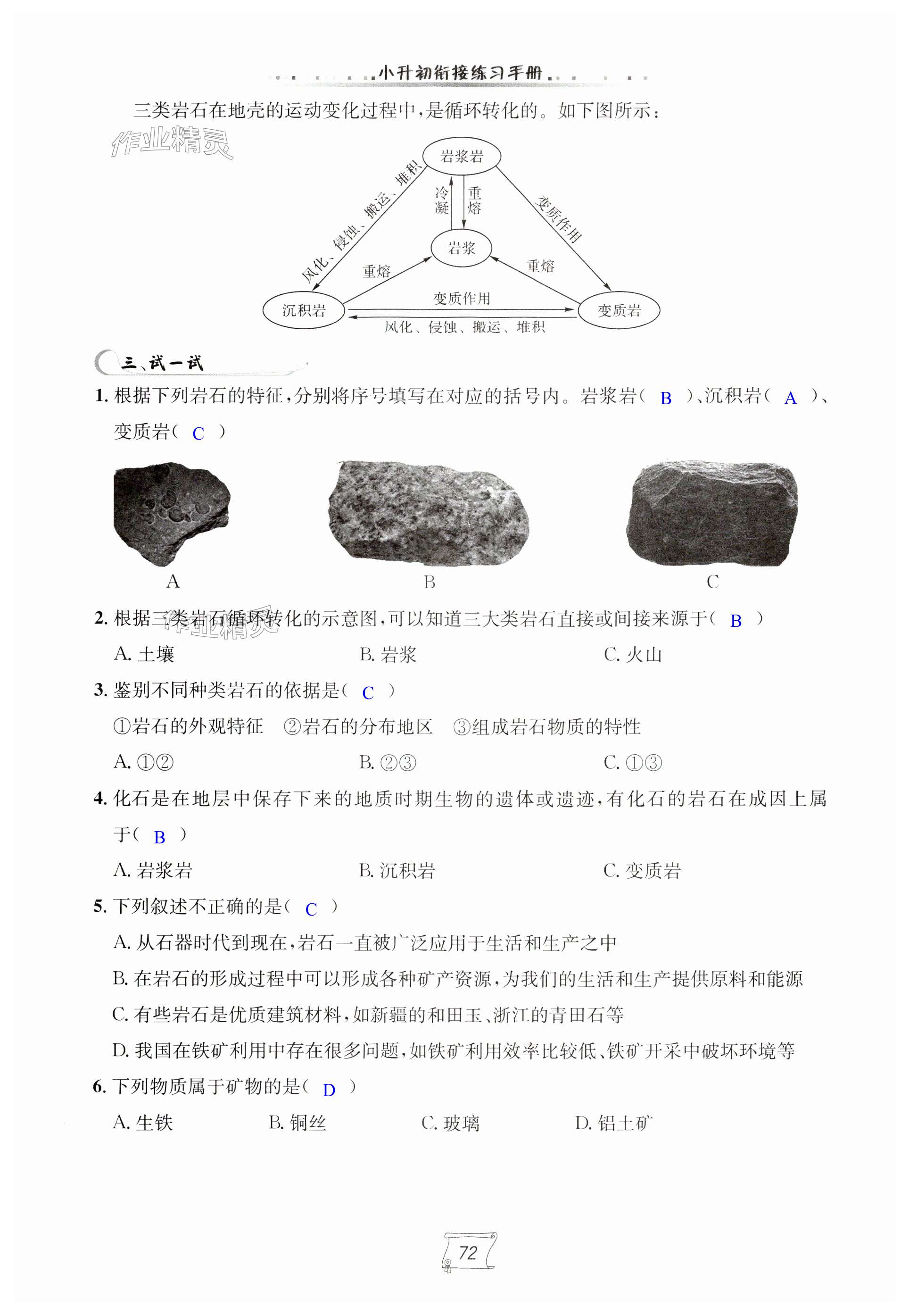 注:目前有些书本章节名称可能整理的还不是很完善,但都是按照顺序排列的,请同学们按照顺序仔细查找。练习册 2024年小升初衔接练习手册六年级数学.科学 答案主要是用来给同学们做完题方便对答案用的,请勿直接抄袭。