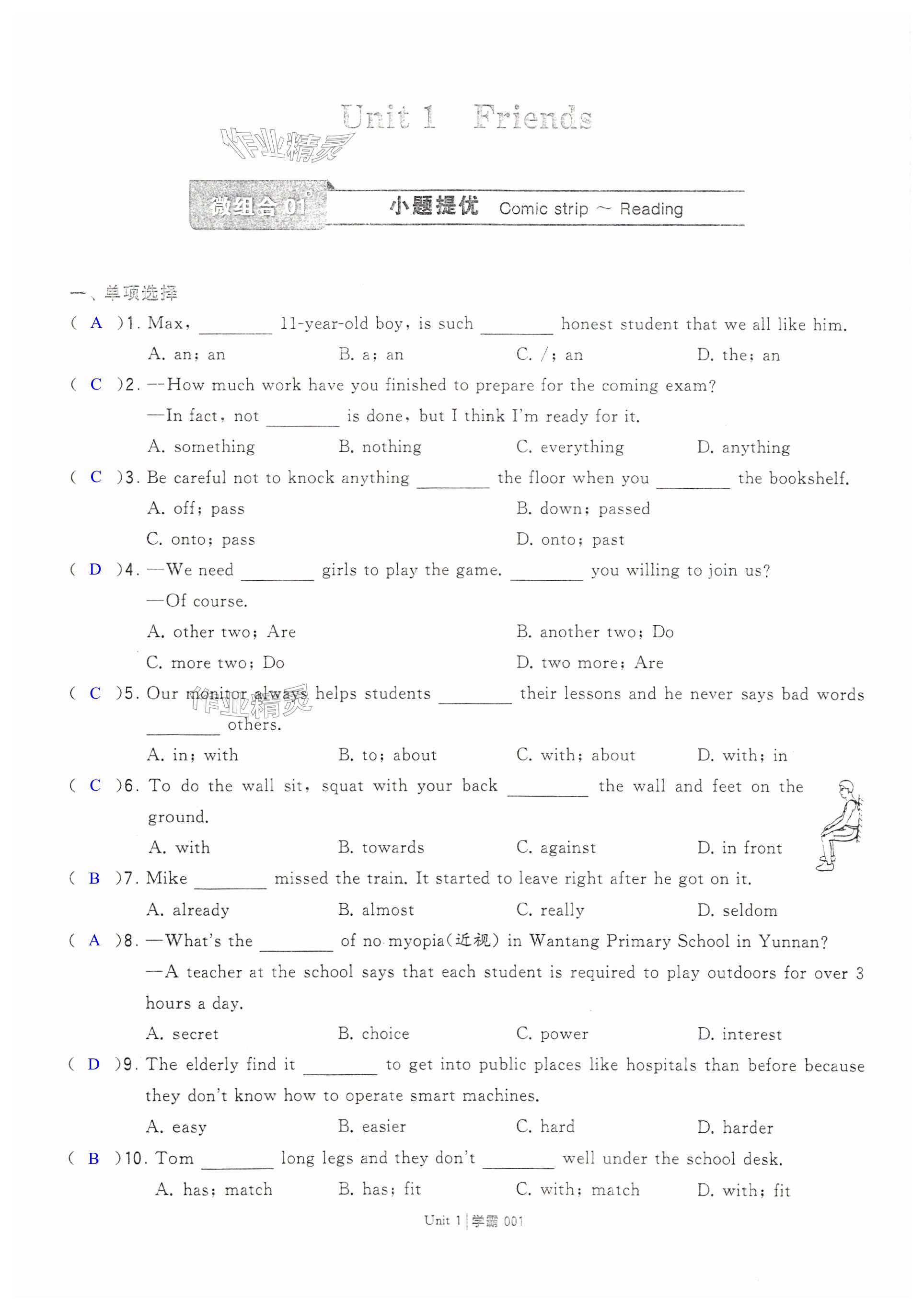 注:目前有些书本章节名称可能整理的还不是很完善,但都是按照顺序排列的,请同学们按照顺序仔细查找。练习册 2024年学霸组合训练八年级英语上册译林版泰州专版 答案主要是用来给同学们做完题方便对答案用的,请勿直接抄袭。