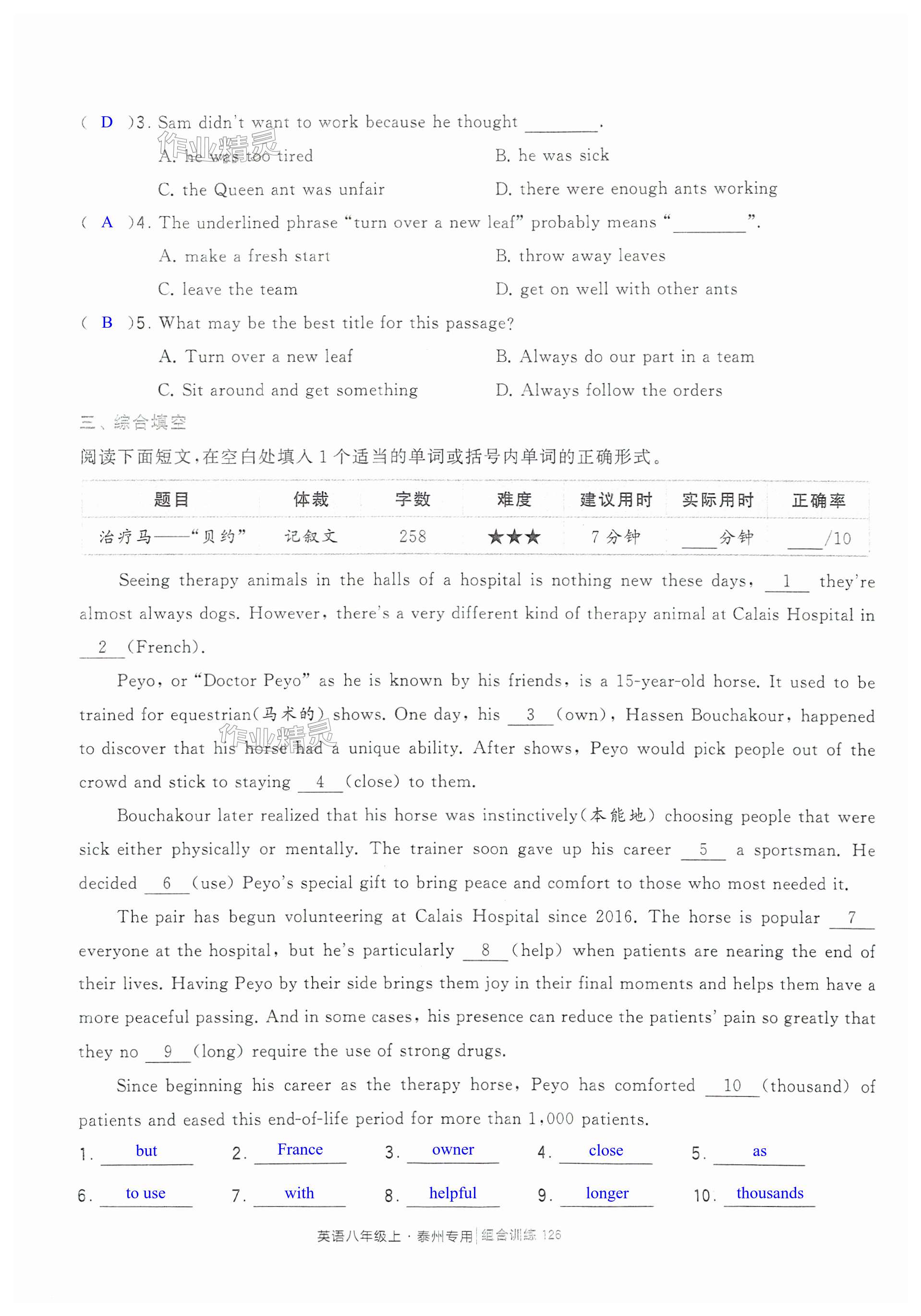 注:目前有些书本章节名称可能整理的还不是很完善,但都是按照顺序排列的,请同学们按照顺序仔细查找。练习册 2024年学霸组合训练八年级英语上册译林版泰州专版 答案主要是用来给同学们做完题方便对答案用的,请勿直接抄袭。