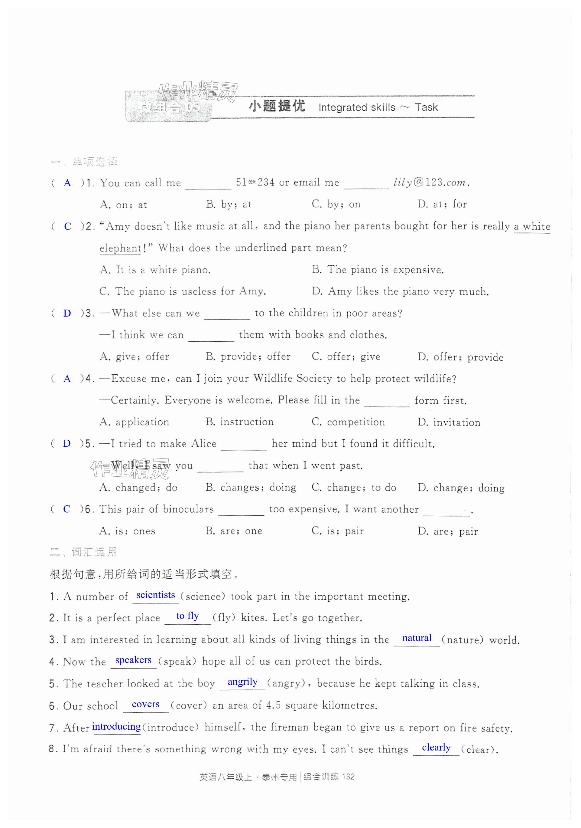 注:目前有些书本章节名称可能整理的还不是很完善,但都是按照顺序排列的,请同学们按照顺序仔细查找。练习册 2024年学霸组合训练八年级英语上册译林版泰州专版 答案主要是用来给同学们做完题方便对答案用的,请勿直接抄袭。