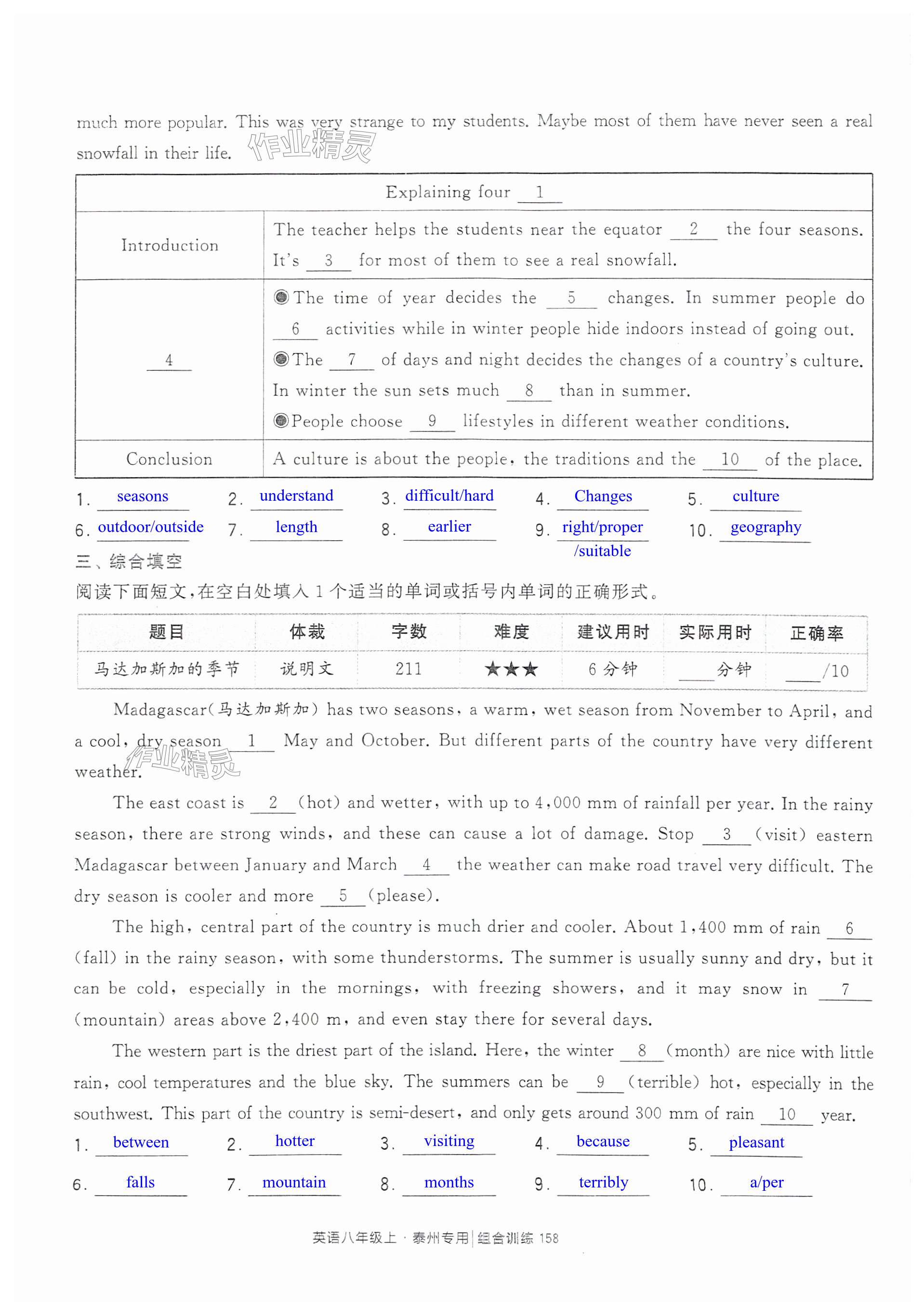 注:目前有些书本章节名称可能整理的还不是很完善,但都是按照顺序排列的,请同学们按照顺序仔细查找。练习册 2024年学霸组合训练八年级英语上册译林版泰州专版 答案主要是用来给同学们做完题方便对答案用的,请勿直接抄袭。