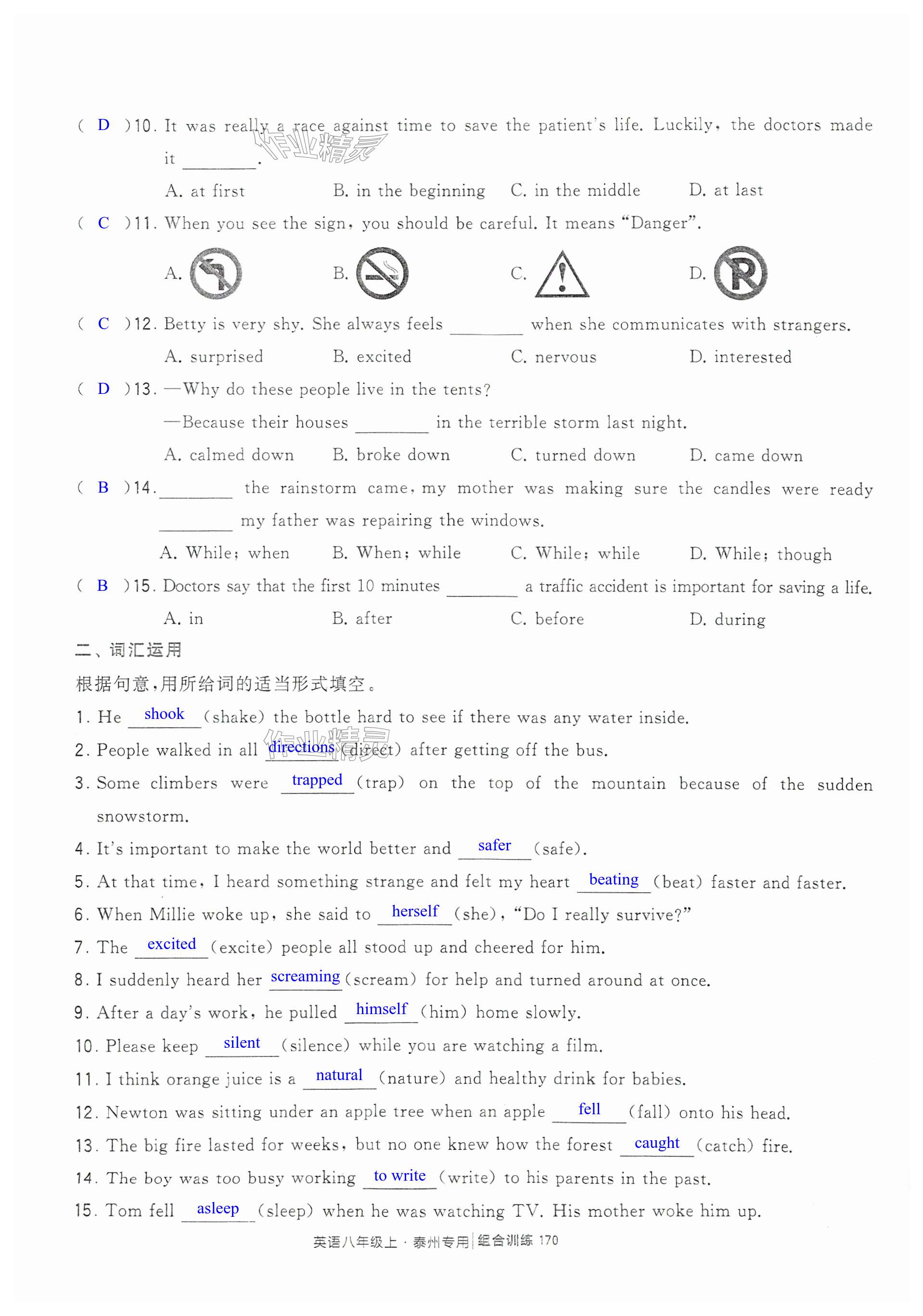 注:目前有些书本章节名称可能整理的还不是很完善,但都是按照顺序排列的,请同学们按照顺序仔细查找。练习册 2024年学霸组合训练八年级英语上册译林版泰州专版 答案主要是用来给同学们做完题方便对答案用的,请勿直接抄袭。