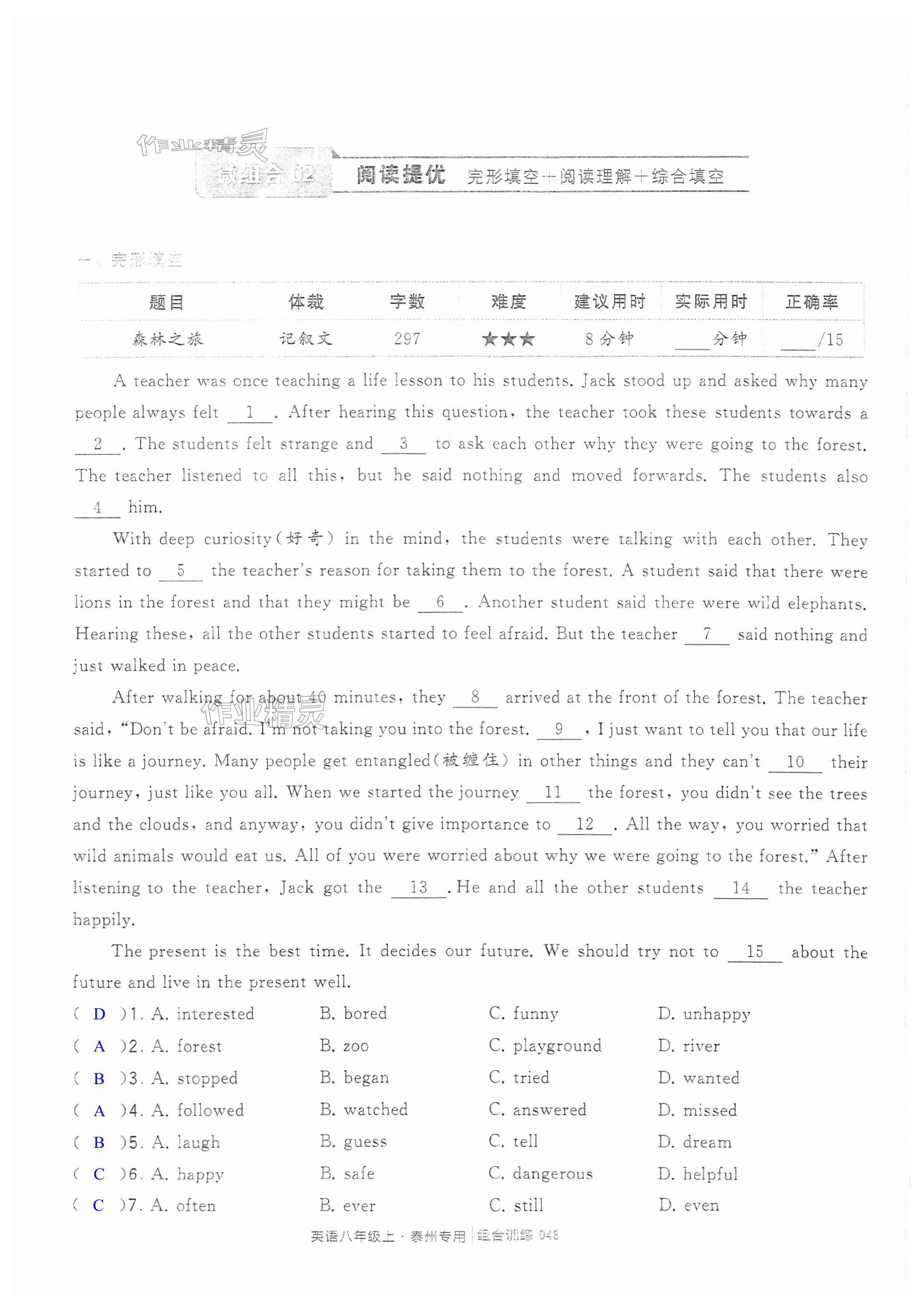 注:目前有些书本章节名称可能整理的还不是很完善,但都是按照顺序排列的,请同学们按照顺序仔细查找。练习册 2024年学霸组合训练八年级英语上册译林版泰州专版 答案主要是用来给同学们做完题方便对答案用的,请勿直接抄袭。