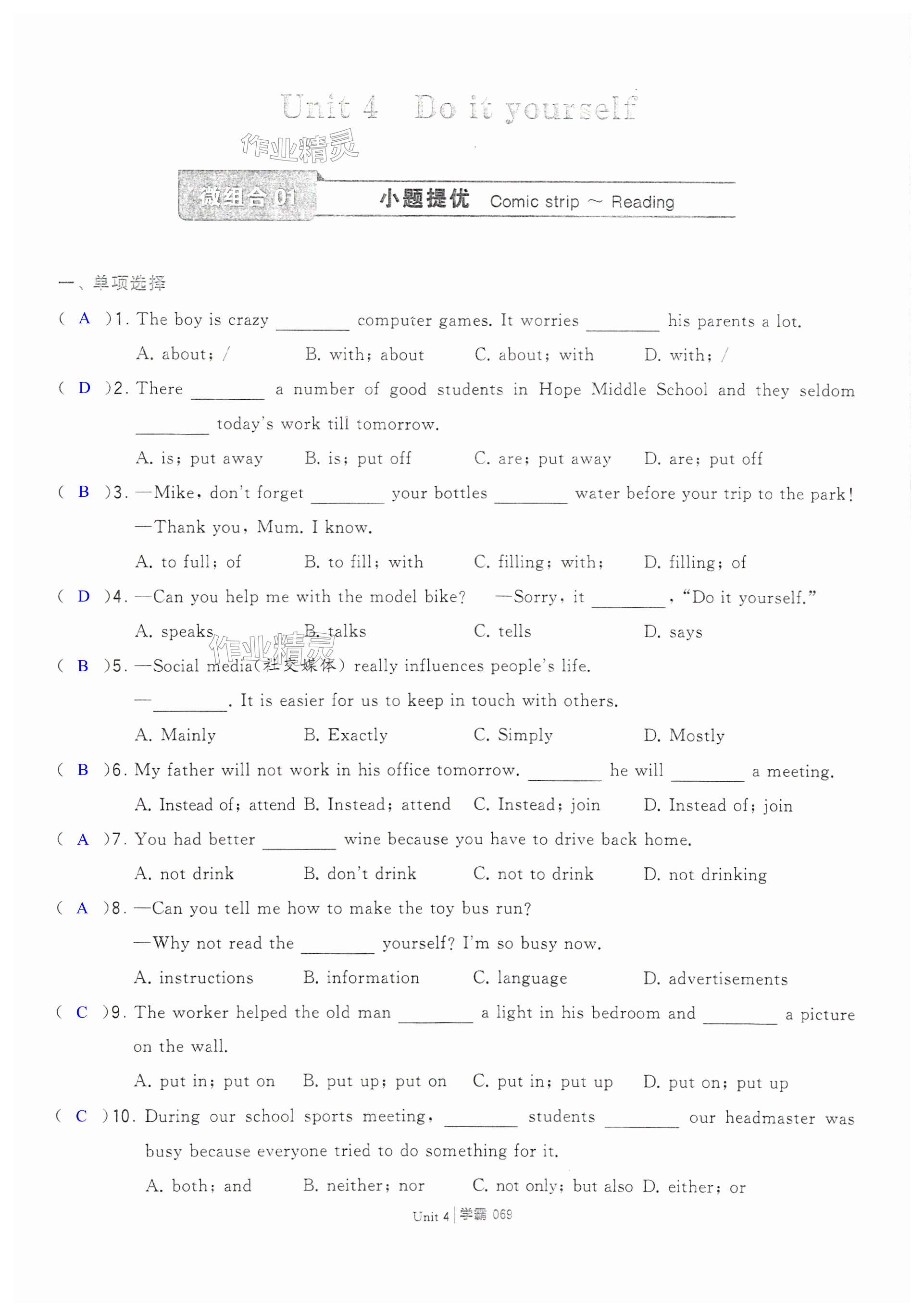 注:目前有些书本章节名称可能整理的还不是很完善,但都是按照顺序排列的,请同学们按照顺序仔细查找。练习册 2024年学霸组合训练八年级英语上册译林版泰州专版 答案主要是用来给同学们做完题方便对答案用的,请勿直接抄袭。