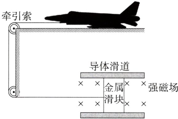 解析 金属滑块与飞机前轮连接,并处于强磁场中,当金属滑块通以强电流时,即可受到强大的推力,由此可知其原理是通电导体在磁场中受力而运动,其原理与电动机相同。