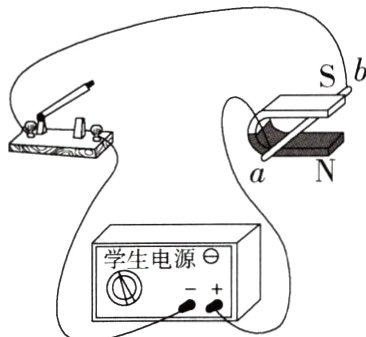 (2)接通电源,闭合开关,导体ab中有电流,导体ab向右运动,说明磁场对通电导体有力的作用;