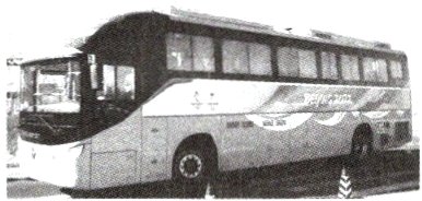 15. [新情境·环境保护] (2024陕西渭南富平校级期末) 2022北京冬奥会期间,“绿衣”大巴车(如图)为运动员、工作人员、志愿者等提供接驳服务,成为一道亮丽风景线。大巴车利用氢燃料电池驱动电动机工作,在平直公路上以72km/h的速度匀速行驶时,电动机的额定功率为84kW。已知c水 = 4.2×10³J/(kg·℃),q氢 = 1.4×10⁸J/kg,求:(P9303001)