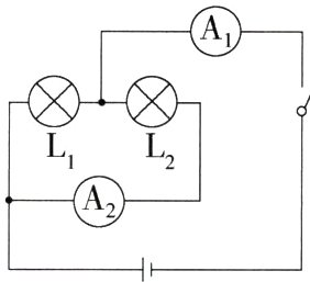 2.(2024内蒙古根河校级期末)如图所示,通过L₁的电流和通过L₂的电流之比是2:1,则A₁表和A₂表的示数之比为(P9302001) ( )