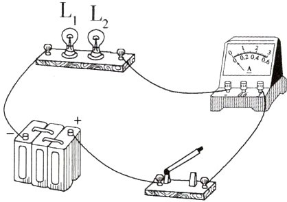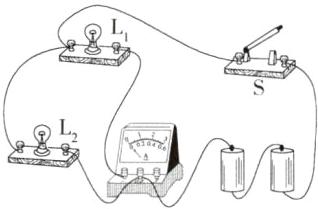解析 两只灯泡的连接方式为并联,电流表只测量通过灯L₁的电流,如图所示,可以先把L₁、电流表连接完整,然后将灯泡L₂并联在L₁支路的两端即可。