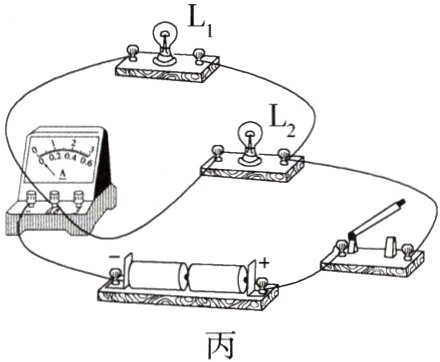 (3)改正后的实验电路如图丙所示,此时电流表测量的是________(选填“A”“B”或“C”)处的电流。为了减少实验数据的特殊性,灯泡L₁和L₂的规格应该________(选填“相同”或“不同”);