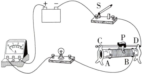 (2)据图可知,滑片右边的电阻丝接入电路,故若滑片向右端滑动时,接入电路的电阻变小,此时电路的电流会变大,灯泡变亮;