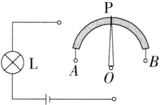 12.(2024江苏南通海门海南中学期中)如图为亮度可调台灯的电路示意图,其中AB是一段电阻丝,滑片可绕O点旋转,与电阻丝接触良好,滑片向右移动时灯变亮,请将图中电路画完整。