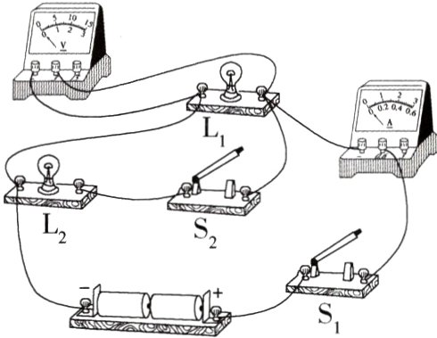 C.若先闭合$S_{1}$,再闭合$S_{2}$,两只灯泡是串联的