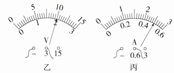 (2)闭合开关后调节滑动变阻器滑片,当电压表的示数如图乙所示时,电流表的示数如图丙所示,定值电阻$R_{x}$的阻值是______Ω;