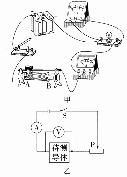 (1)潘同学用小灯泡作为待测导体,接好最后一根导线,小灯泡立即发出耀眼的光并很快熄灭,则他一定是将导线接在了如图甲中滑动变阻器的______(选填“A”或“B”)接线柱上了。