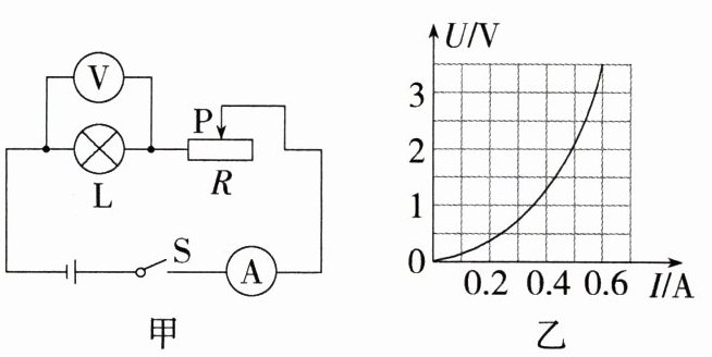 3.新考法.设计实验(2024吉林德惠期末)图甲是小致研究小灯泡电阻的实验电路图,图乙是小致根据实验数据绘制出的U - I图像,小灯泡标有“2V”字样,滑动变阻器R标有“20Ω 1A”字样:(P9302003)