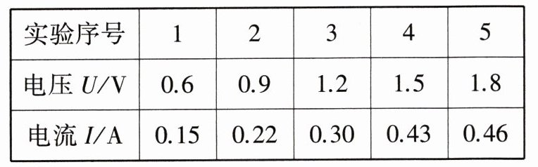 ①在探究电阻一定时电流与电压关系的实验中,为了得出普遍性的规律,要进行多次实验多次测量,故①正确;②在探究电阻一定时电流与电压关系的实验中,需要控制电阻阻值不变,根据表格中第1、2组的数据,利用欧姆定律可知,当$U_{1}=0.6\ V$,$I_{1}=0.15\ A$时,定值电阻阻值为$R_{1}=\frac{U_{1}}{I_{1}}=\frac{0.6\ V}{0.15\ A}=4\ \Omega$;当$U_{2}=0.9\ V$,$I_{2}=0.22\ A$时,定值电阻阻值为$R_{2}=\frac{U_{2}}{I_{2}}=\frac{0.9\ V}{0.22\ A}\approx4.1\ \Omega$,在误差允许的范围内,第2次实验数据是正确的,故②错误;③由表中第1组数据,根据串联电路电压规律和欧姆定律可知,变阻器连入电路中的电阻为$R_{滑}=\frac{U - U_{1}}{I_{1}}=\frac{3\ V - 0.6\ V}{0.15\ A}=16\ \Omega<20\ \Omega$,因此选用的滑动变阻器的规格可能是“$20\ \Omega\ \ 1\ A$”,故③正确;④分析表中数据,考虑到误差因素,导体两端电压增大为原来的几倍,通过导体的电流也增大为原来的几倍,故得出的结论为电阻一定时,通过导体的电流与导体两端的电压成正比,故④错误。综上所述,选B。