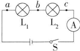 7.(2024山东烟台芝罘期中)某同学通过实验研究串联电路中的电流关系,实验电路如图所示,闭合开关S后,灯泡L₁、L₂均不发光,且电流表示数为零。他用电流表检测电路故障,将电流表的正、负接线柱分别与a、b两点相连,灯L₁、L₂均不发光,且电流表的示数为零;将电流表的正、负接线柱分别与b、c两点相连,灯L₁发光,电流表的示数为0.3A。若电路中只有一处故障,下列对于故障的判断正确的是( )