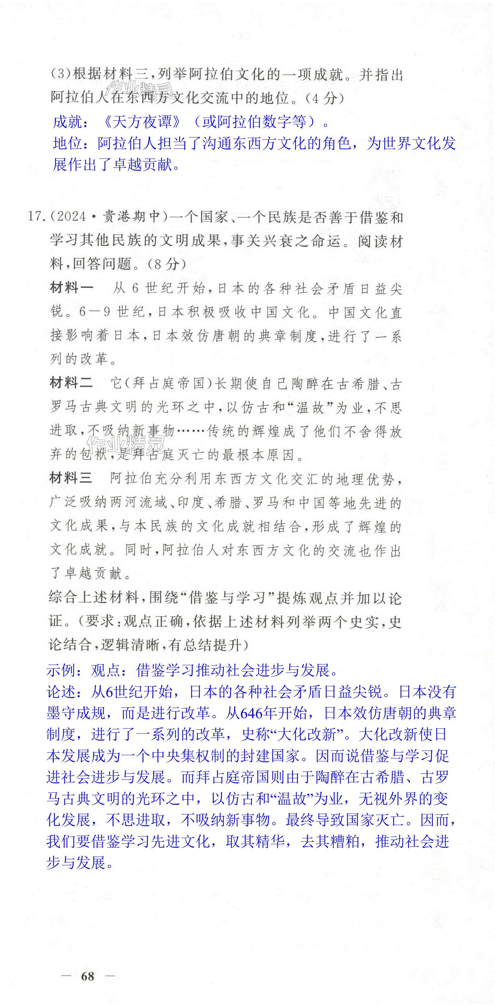 注:目前有些书本章节名称可能整理的还不是很完善,但都是按照顺序排列的,请同学们按照顺序仔细查找。练习册 2024年世纪金榜百练百胜九年级历史上册人教版湖北专版 答案主要是用来给同学们做完题方便对答案用的,请勿直接抄袭。