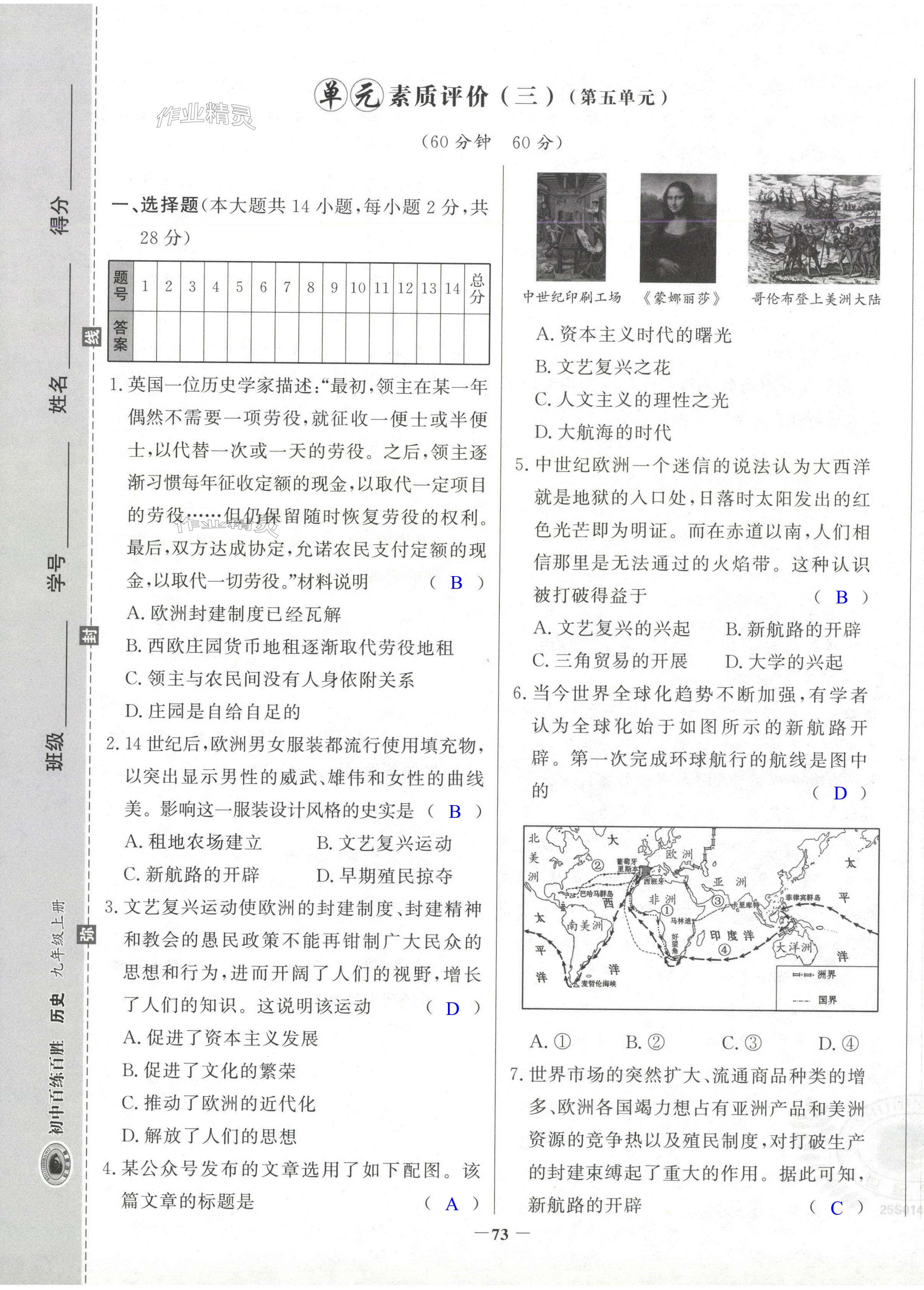 注:目前有些书本章节名称可能整理的还不是很完善,但都是按照顺序排列的,请同学们按照顺序仔细查找。练习册 2024年世纪金榜百练百胜九年级历史上册人教版湖北专版 答案主要是用来给同学们做完题方便对答案用的,请勿直接抄袭。