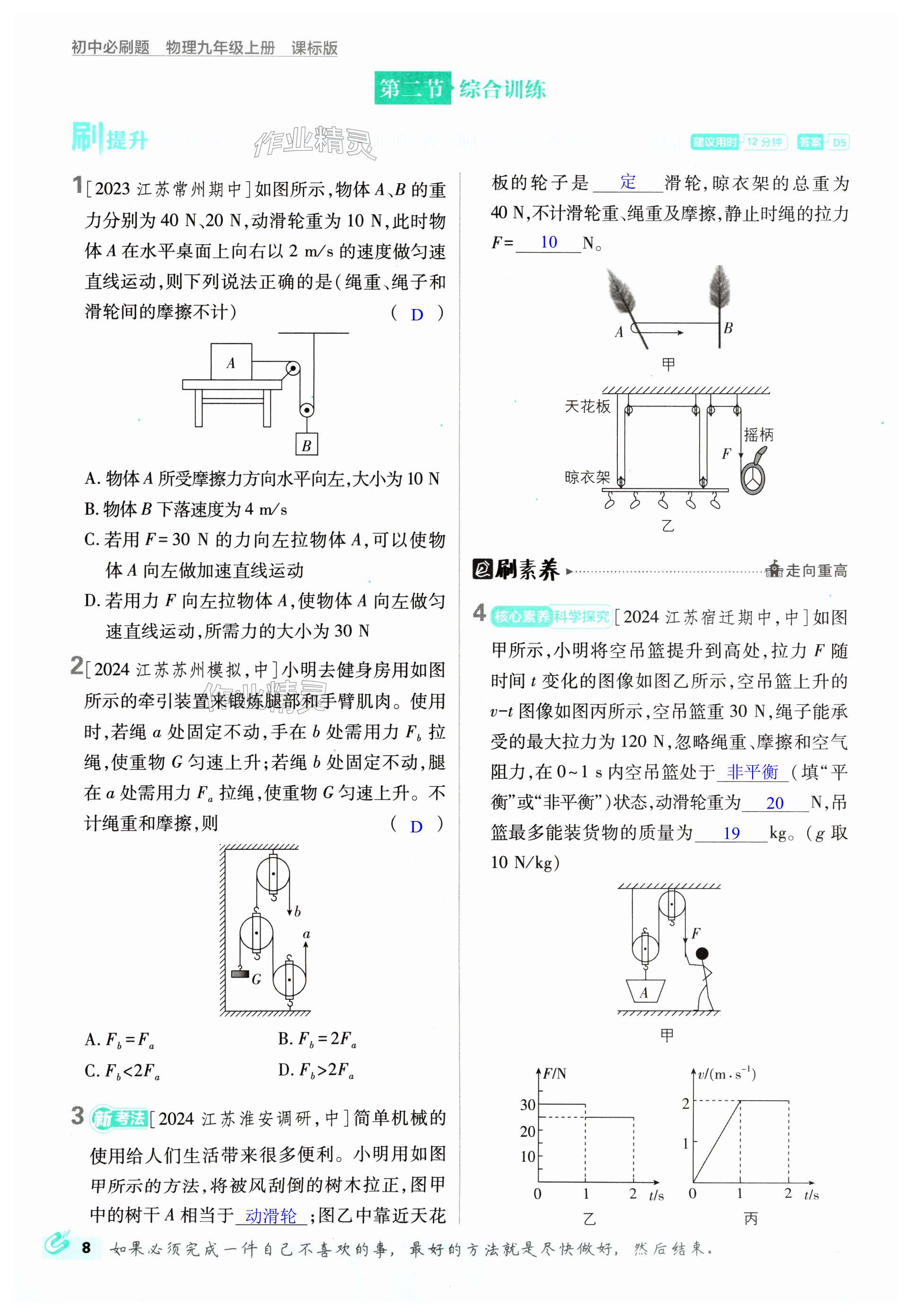 注:目前有些书本章节名称可能整理的还不是很完善,但都是按照顺序排列的,请同学们按照顺序仔细查找。练习册 2024年初中必刷题九年级物理上册苏科版 答案主要是用来给同学们做完题方便对答案用的,请勿直接抄袭。