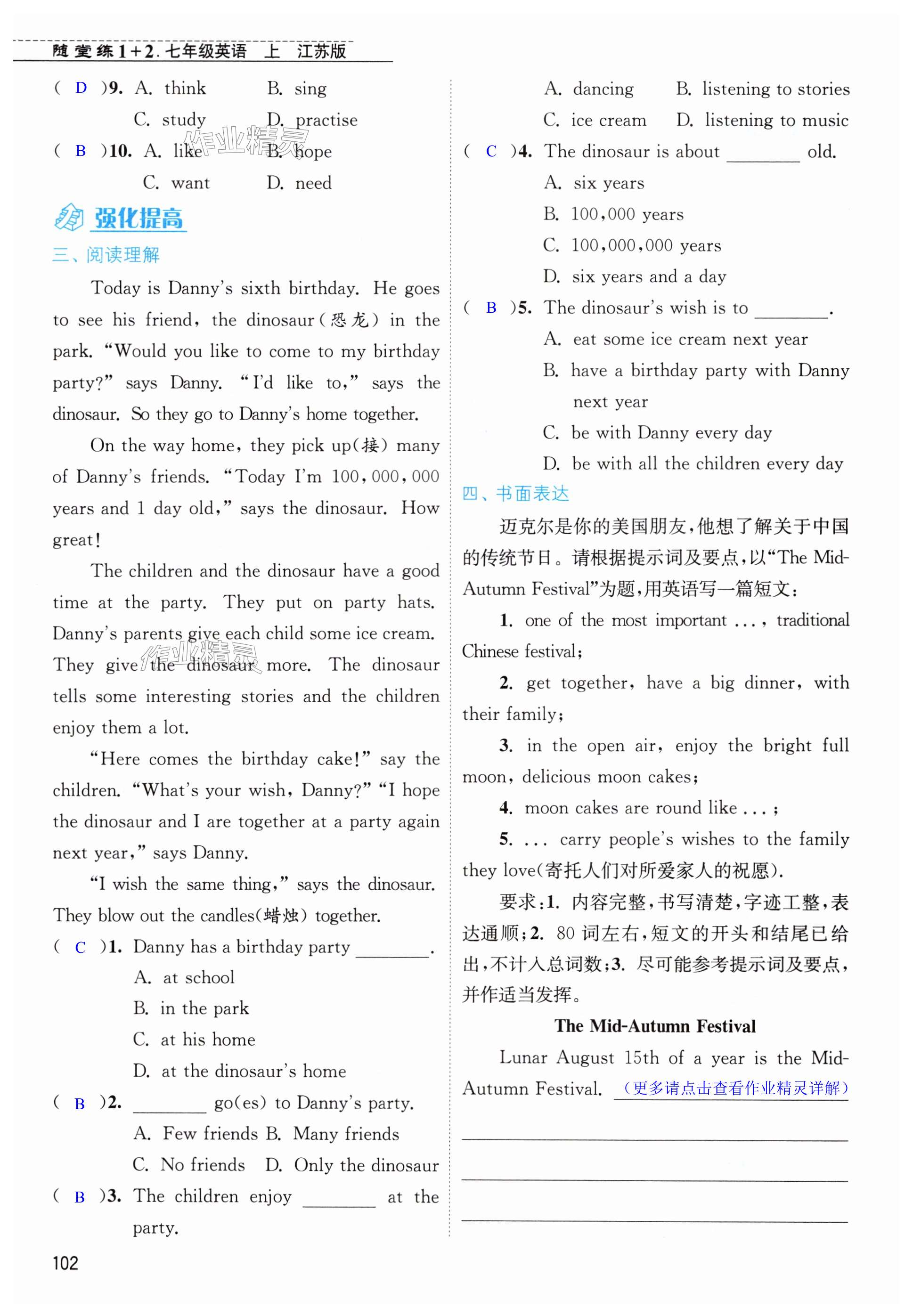 注:目前有些书本章节名称可能整理的还不是很完善,但都是按照顺序排列的,请同学们按照顺序仔细查找。练习册 2024年随堂练1加2七年级英语上册译林版 答案主要是用来给同学们做完题方便对答案用的,请勿直接抄袭。