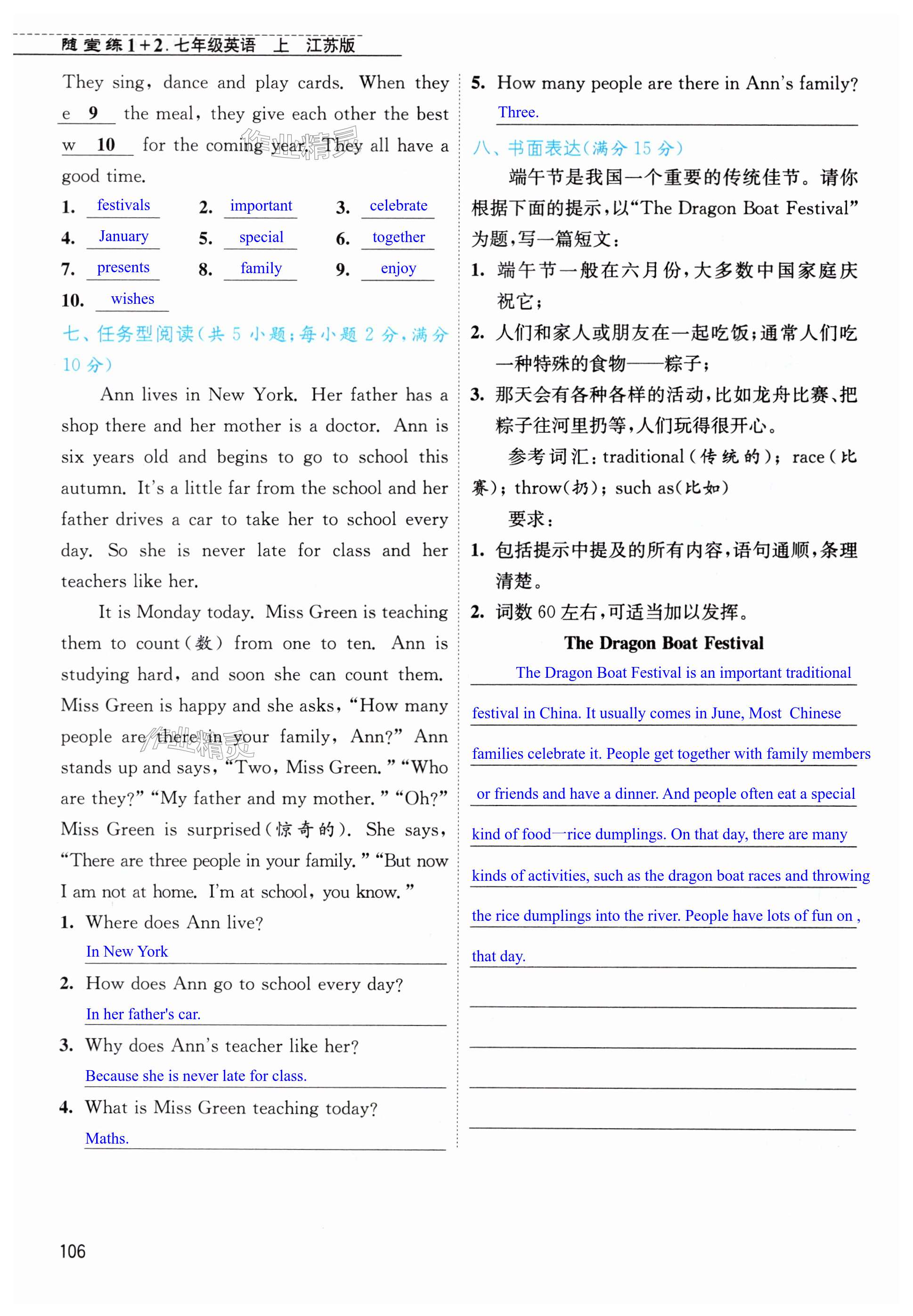 注:目前有些书本章节名称可能整理的还不是很完善,但都是按照顺序排列的,请同学们按照顺序仔细查找。练习册 2024年随堂练1加2七年级英语上册译林版 答案主要是用来给同学们做完题方便对答案用的,请勿直接抄袭。