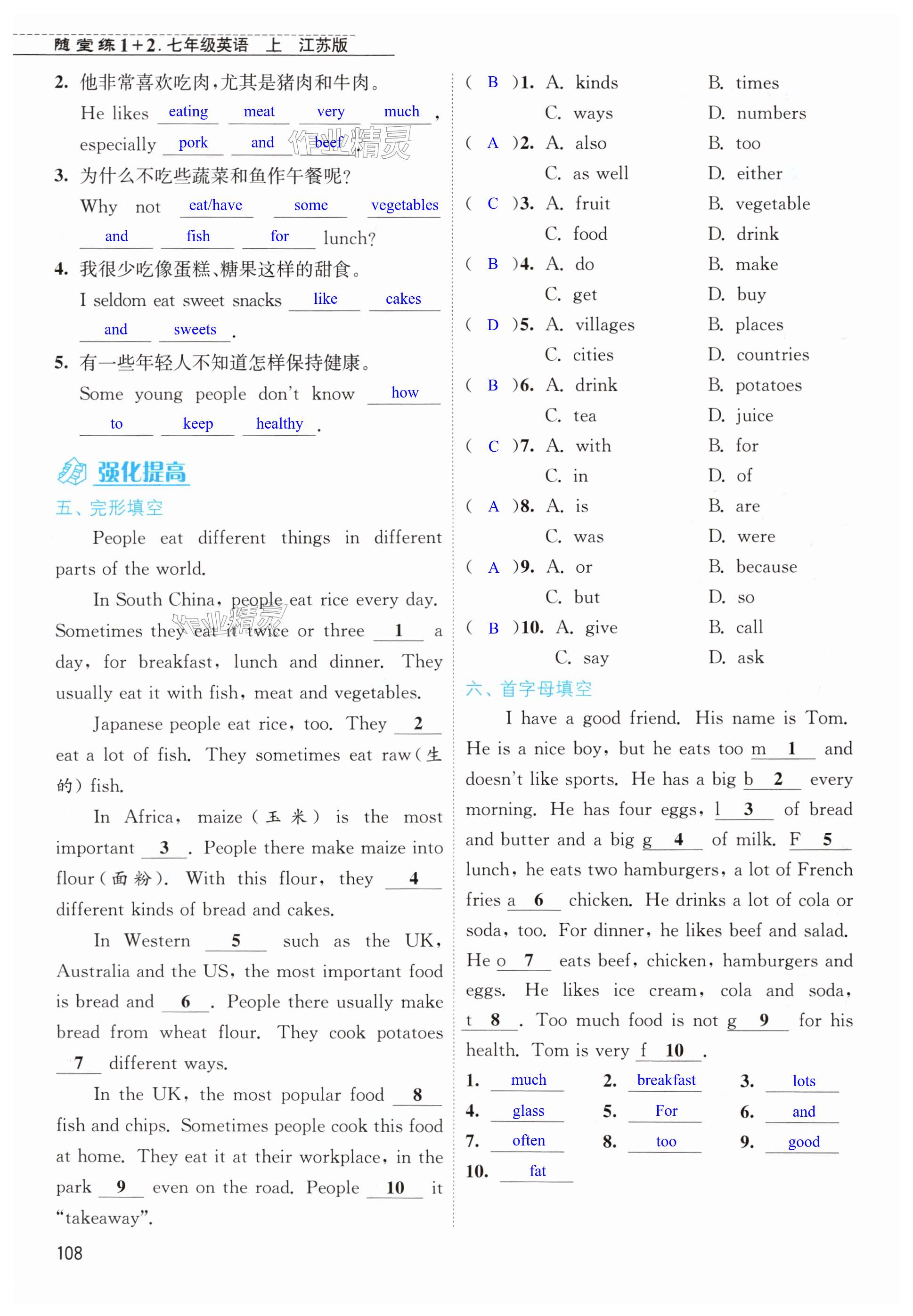 注:目前有些书本章节名称可能整理的还不是很完善,但都是按照顺序排列的,请同学们按照顺序仔细查找。练习册 2024年随堂练1加2七年级英语上册译林版 答案主要是用来给同学们做完题方便对答案用的,请勿直接抄袭。