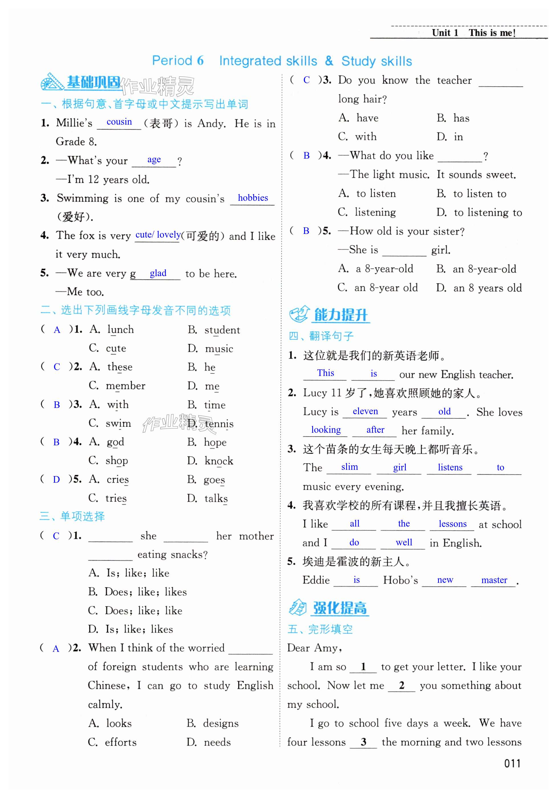 注:目前有些书本章节名称可能整理的还不是很完善,但都是按照顺序排列的,请同学们按照顺序仔细查找。练习册 2024年随堂练1加2七年级英语上册译林版 答案主要是用来给同学们做完题方便对答案用的,请勿直接抄袭。