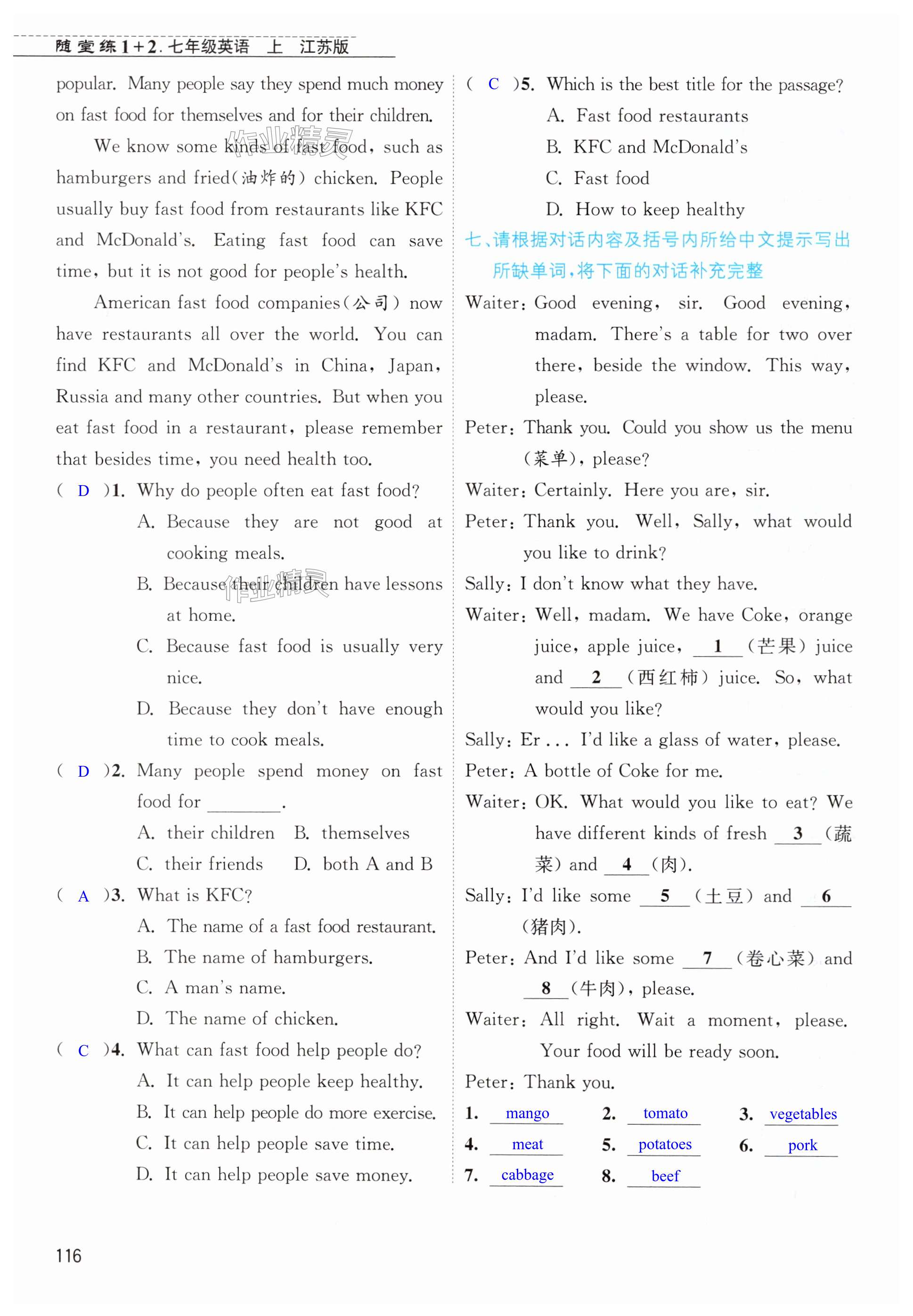注:目前有些书本章节名称可能整理的还不是很完善,但都是按照顺序排列的,请同学们按照顺序仔细查找。练习册 2024年随堂练1加2七年级英语上册译林版 答案主要是用来给同学们做完题方便对答案用的,请勿直接抄袭。