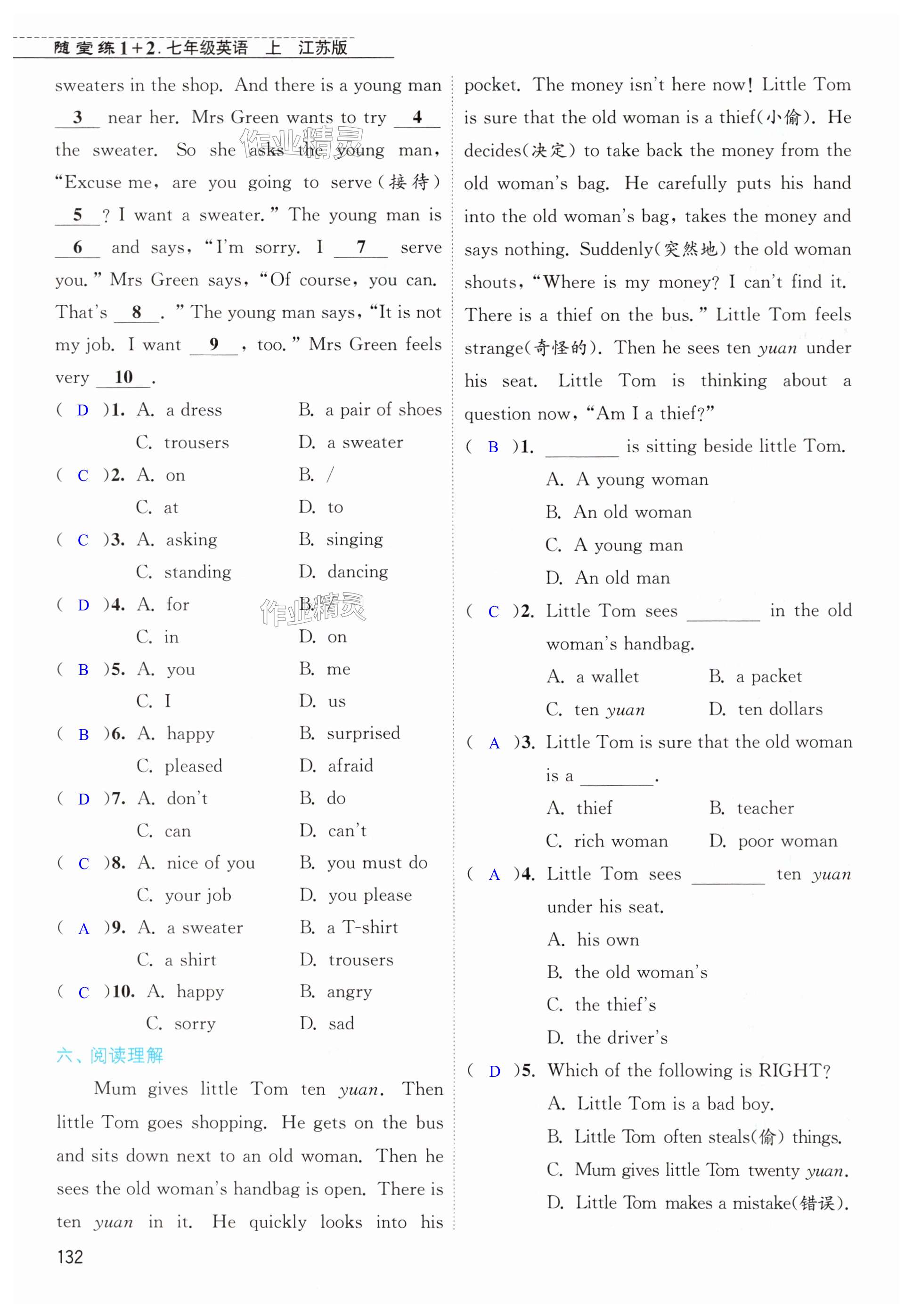 注:目前有些书本章节名称可能整理的还不是很完善,但都是按照顺序排列的,请同学们按照顺序仔细查找。练习册 2024年随堂练1加2七年级英语上册译林版 答案主要是用来给同学们做完题方便对答案用的,请勿直接抄袭。