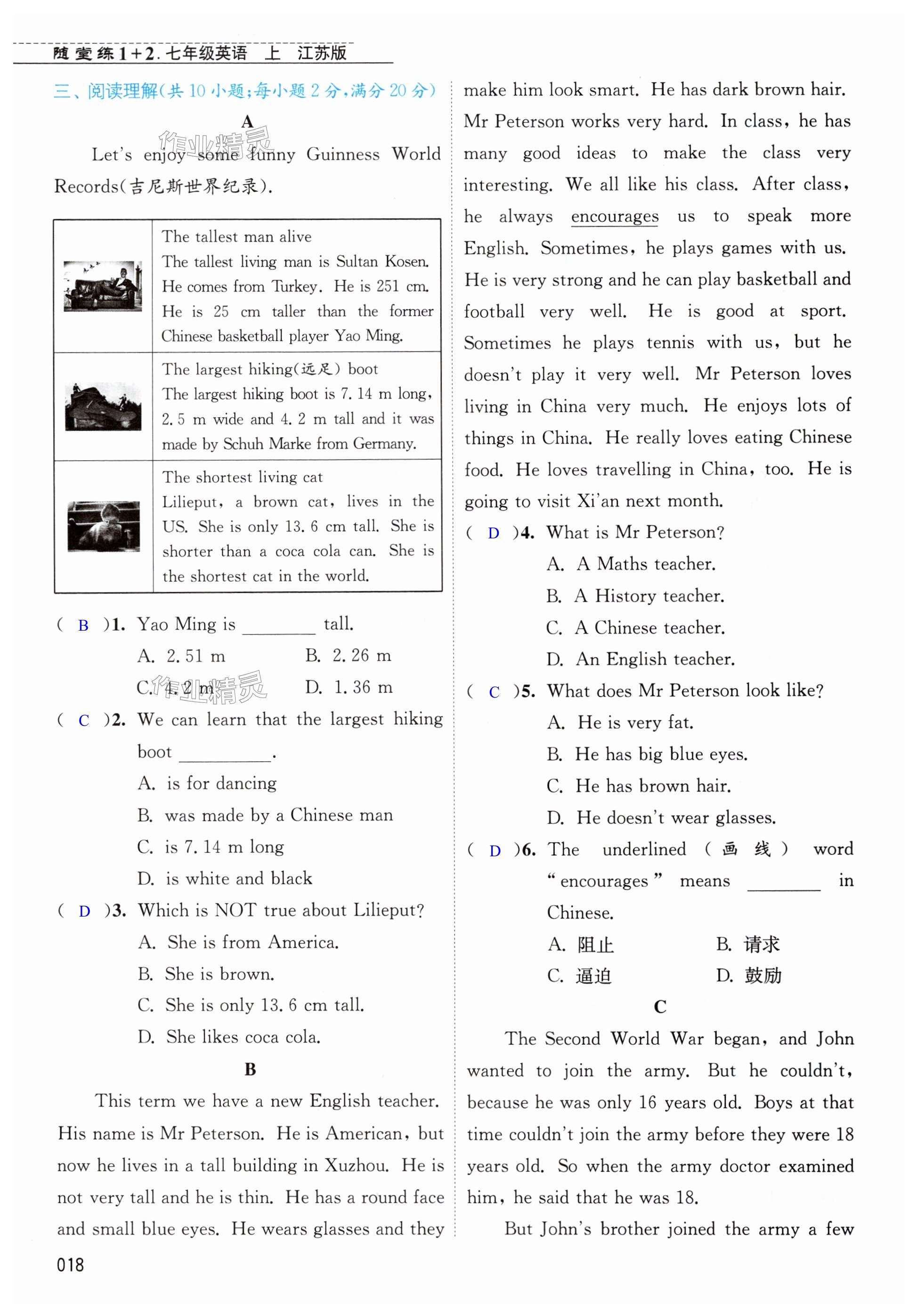 注:目前有些书本章节名称可能整理的还不是很完善,但都是按照顺序排列的,请同学们按照顺序仔细查找。练习册 2024年随堂练1加2七年级英语上册译林版 答案主要是用来给同学们做完题方便对答案用的,请勿直接抄袭。