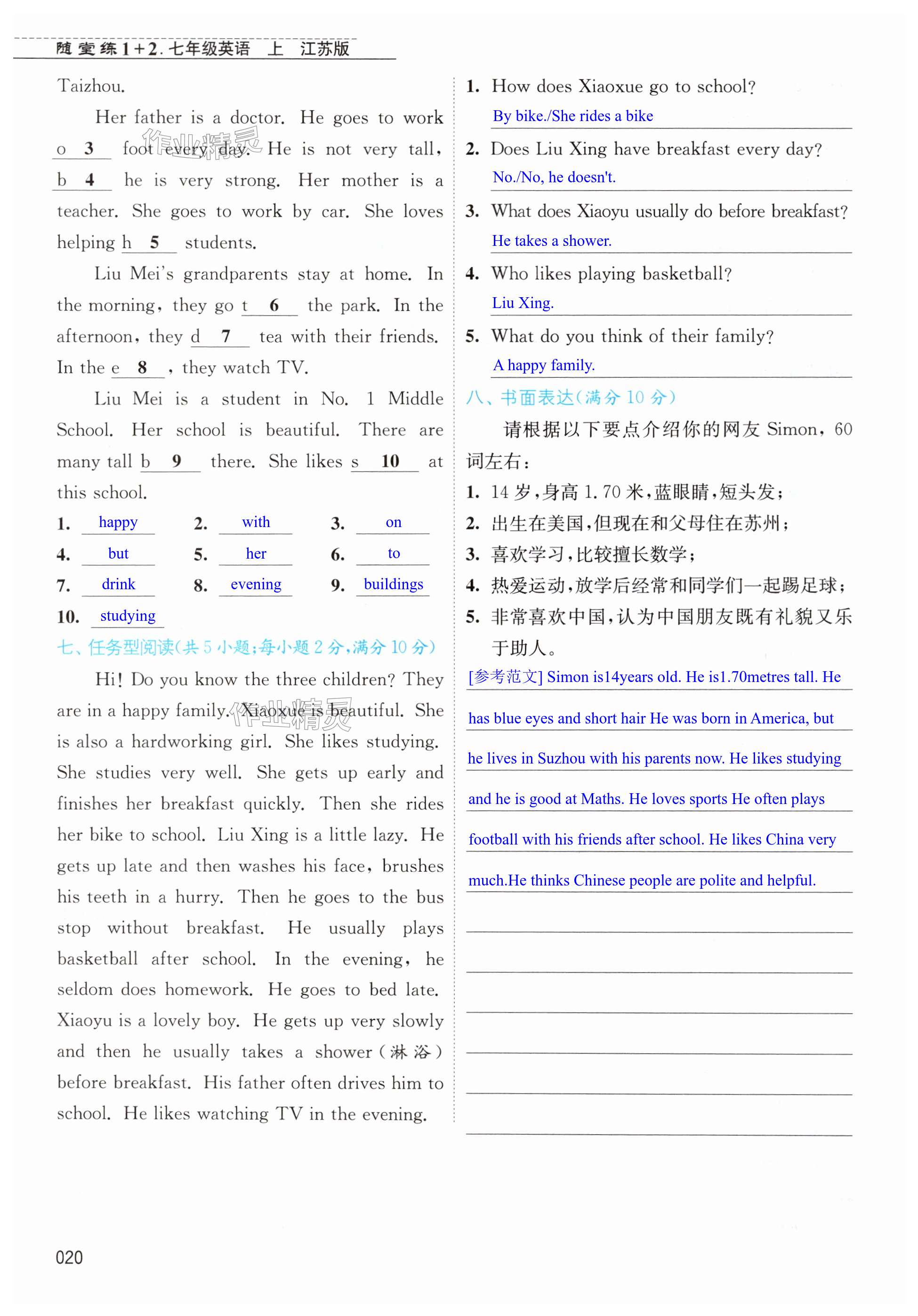 注:目前有些书本章节名称可能整理的还不是很完善,但都是按照顺序排列的,请同学们按照顺序仔细查找。练习册 2024年随堂练1加2七年级英语上册译林版 答案主要是用来给同学们做完题方便对答案用的,请勿直接抄袭。