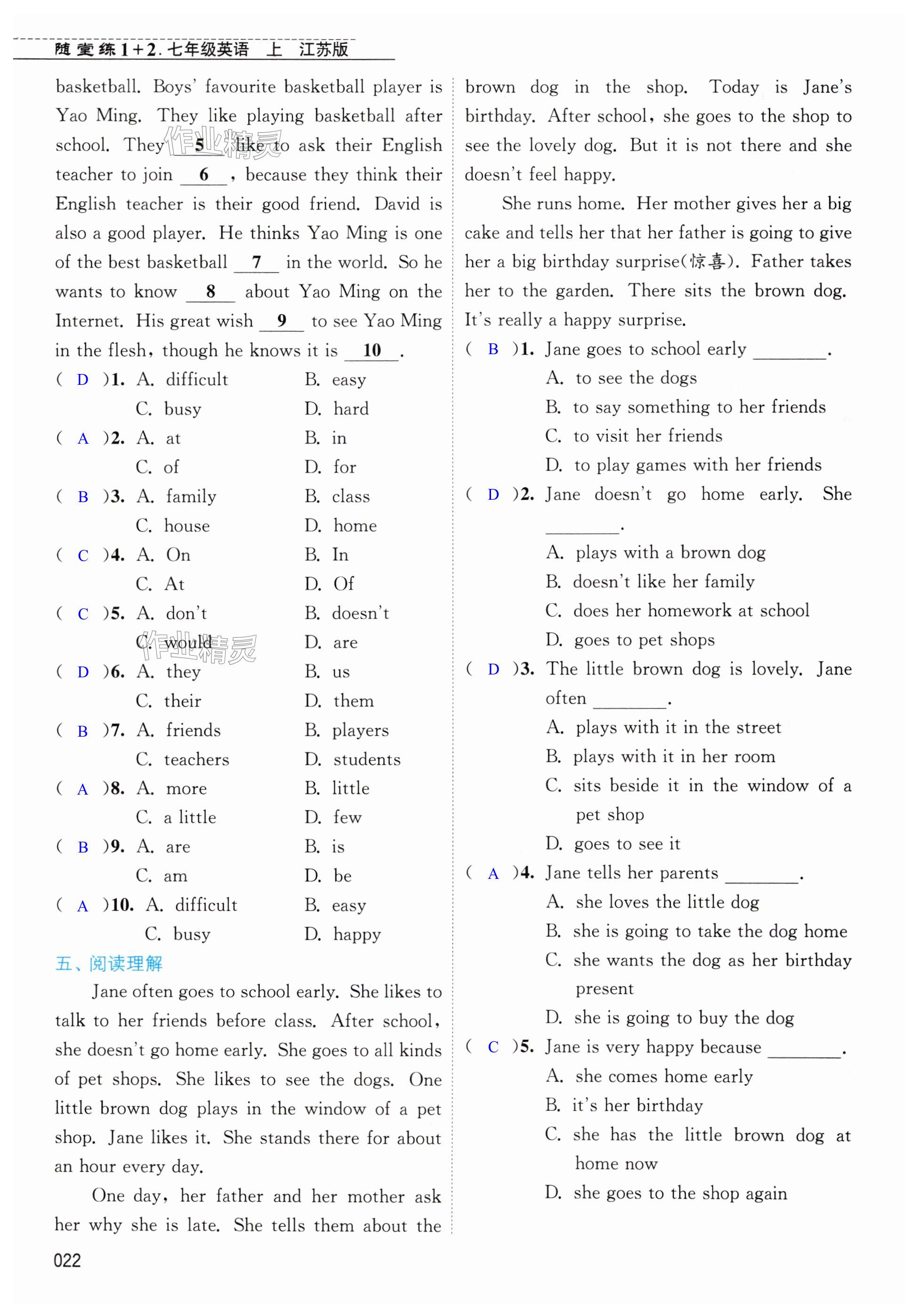 注:目前有些书本章节名称可能整理的还不是很完善,但都是按照顺序排列的,请同学们按照顺序仔细查找。练习册 2024年随堂练1加2七年级英语上册译林版 答案主要是用来给同学们做完题方便对答案用的,请勿直接抄袭。