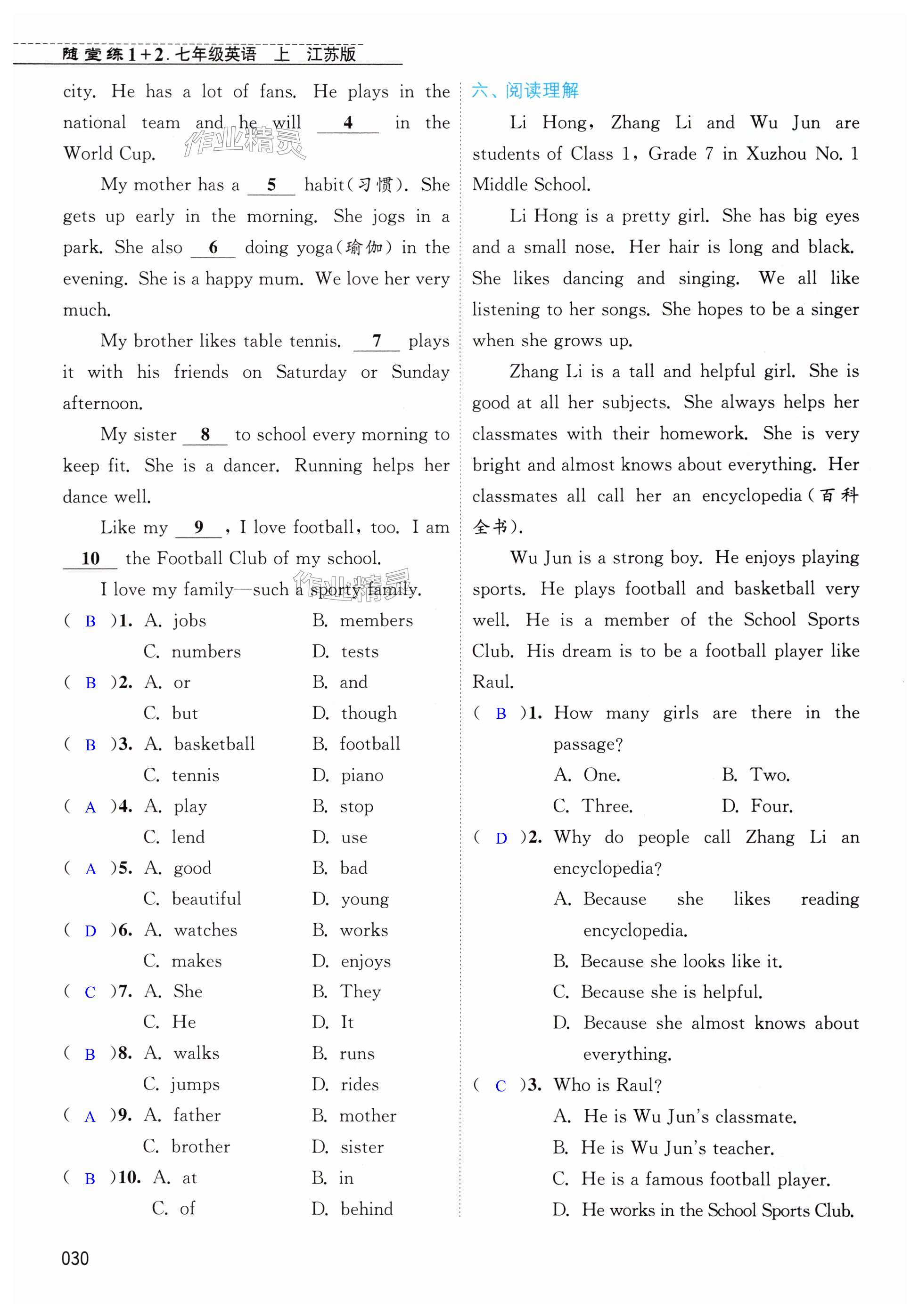 注:目前有些书本章节名称可能整理的还不是很完善,但都是按照顺序排列的,请同学们按照顺序仔细查找。练习册 2024年随堂练1加2七年级英语上册译林版 答案主要是用来给同学们做完题方便对答案用的,请勿直接抄袭。