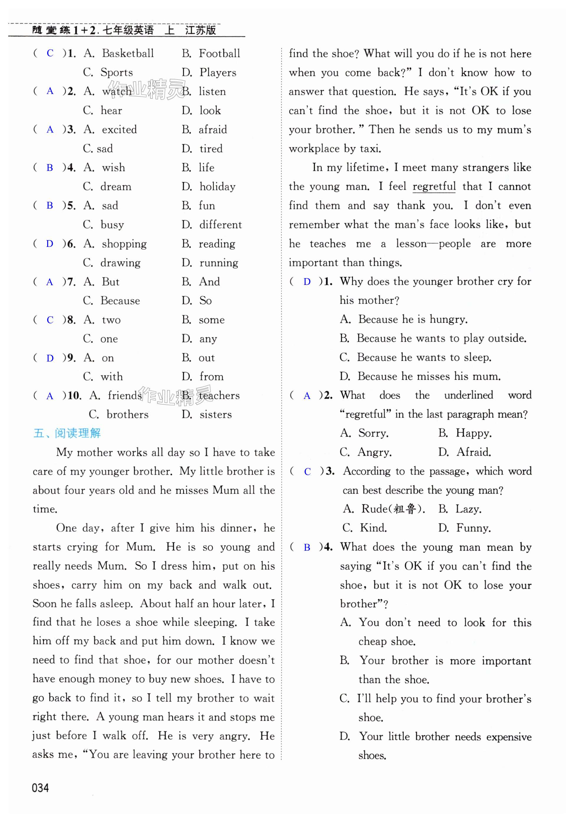 注:目前有些书本章节名称可能整理的还不是很完善,但都是按照顺序排列的,请同学们按照顺序仔细查找。练习册 2024年随堂练1加2七年级英语上册译林版 答案主要是用来给同学们做完题方便对答案用的,请勿直接抄袭。