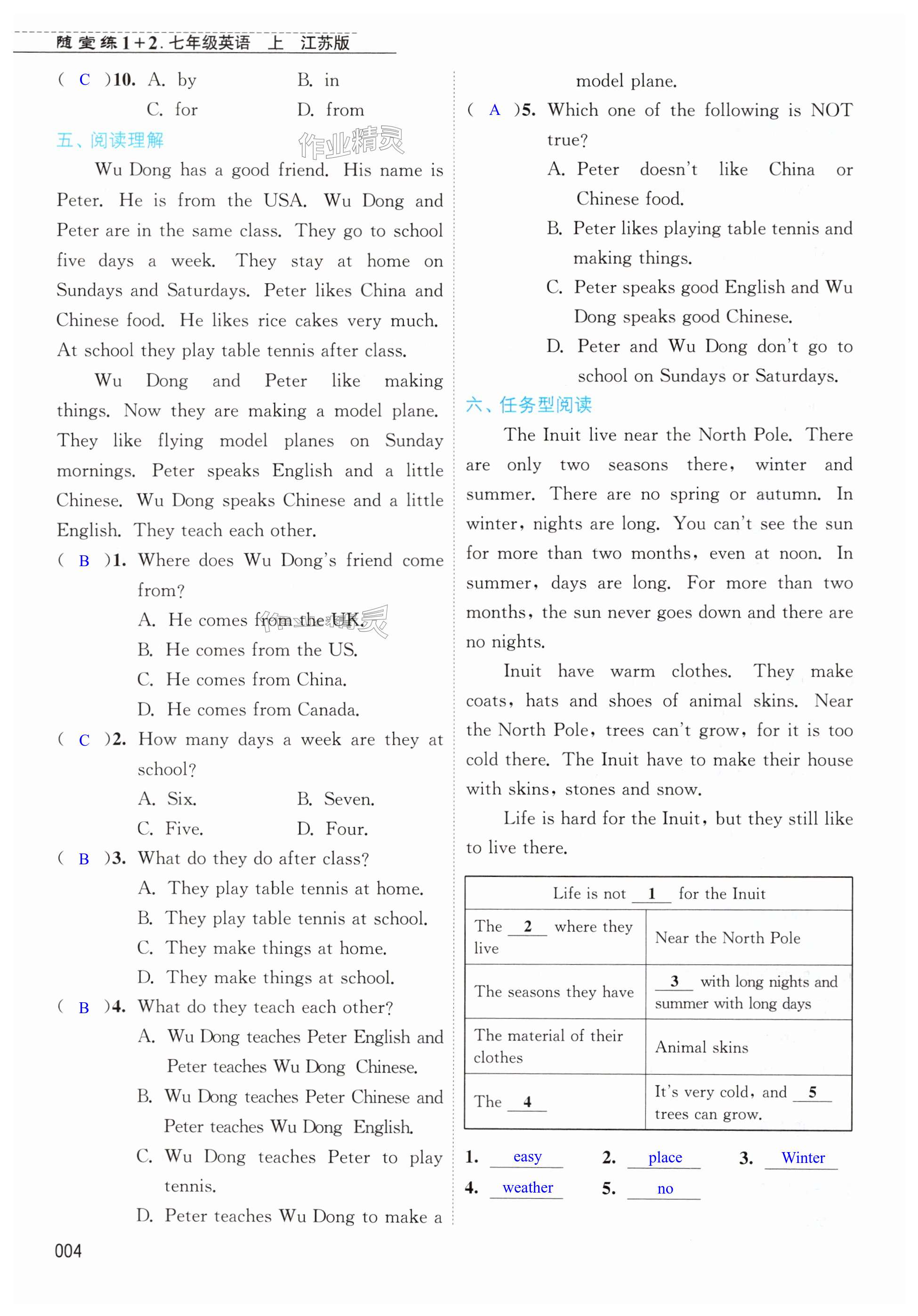 注:目前有些书本章节名称可能整理的还不是很完善,但都是按照顺序排列的,请同学们按照顺序仔细查找。练习册 2024年随堂练1加2七年级英语上册译林版 答案主要是用来给同学们做完题方便对答案用的,请勿直接抄袭。