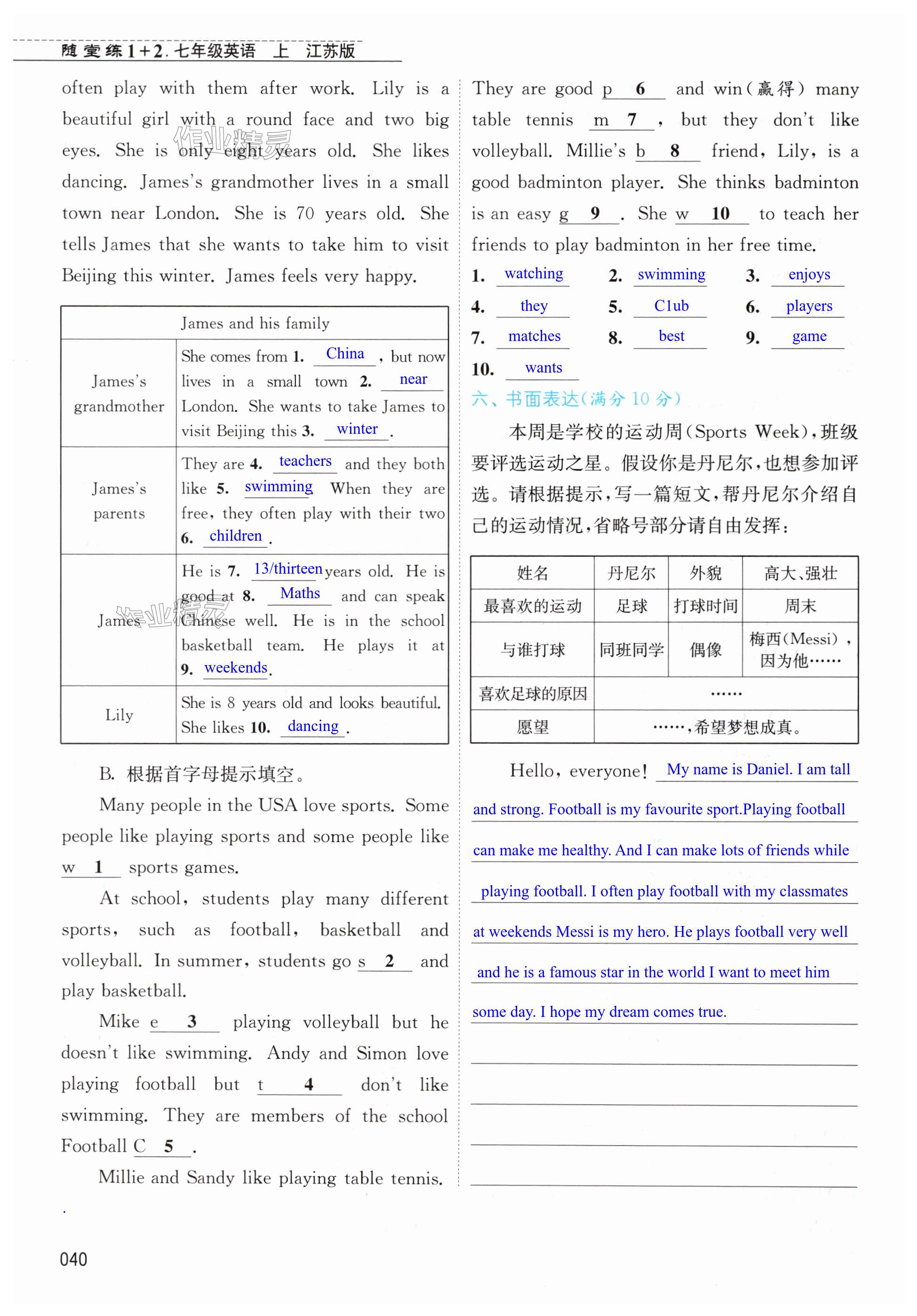 注:目前有些书本章节名称可能整理的还不是很完善,但都是按照顺序排列的,请同学们按照顺序仔细查找。练习册 2024年随堂练1加2七年级英语上册译林版 答案主要是用来给同学们做完题方便对答案用的,请勿直接抄袭。
