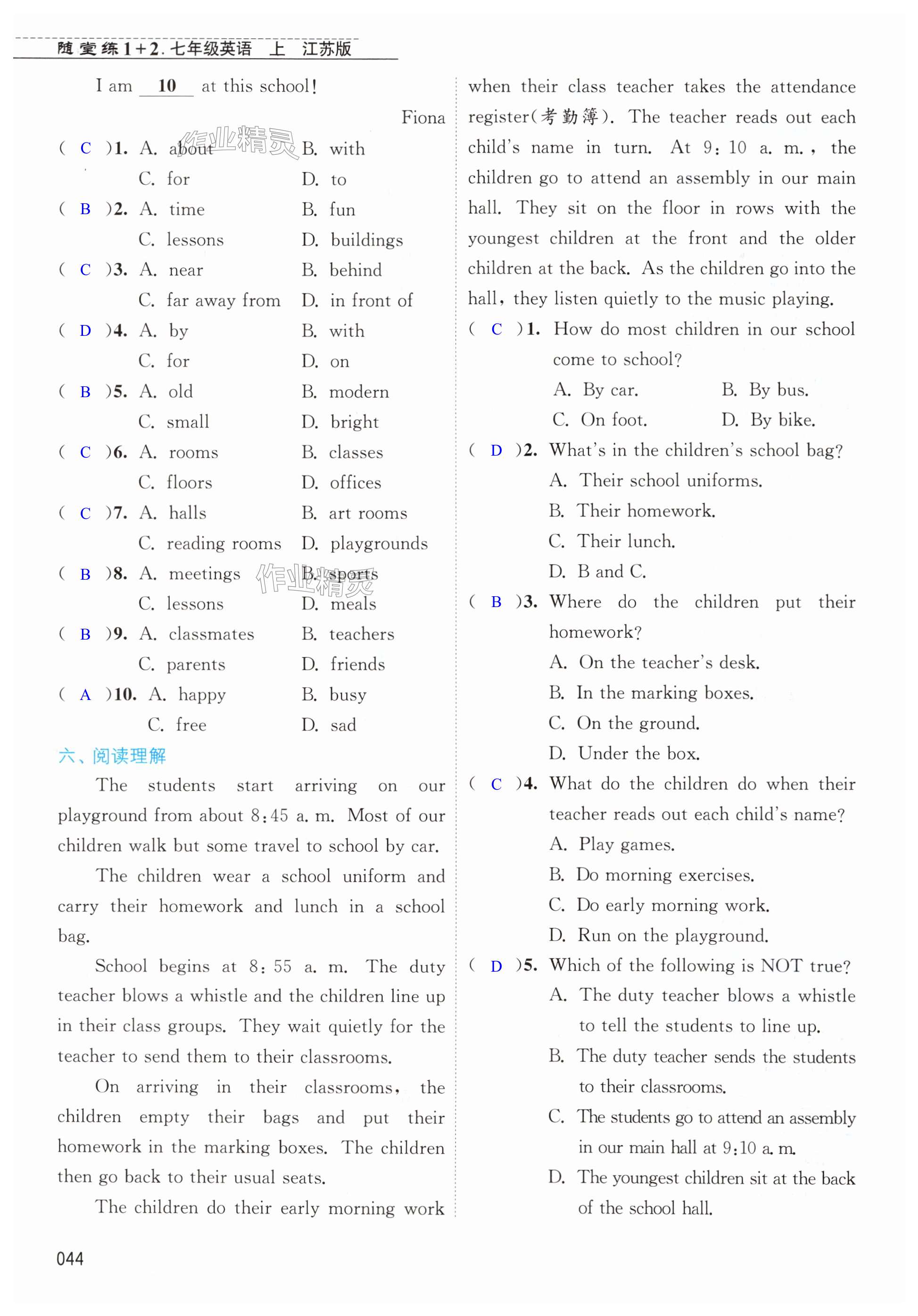 注:目前有些书本章节名称可能整理的还不是很完善,但都是按照顺序排列的,请同学们按照顺序仔细查找。练习册 2024年随堂练1加2七年级英语上册译林版 答案主要是用来给同学们做完题方便对答案用的,请勿直接抄袭。