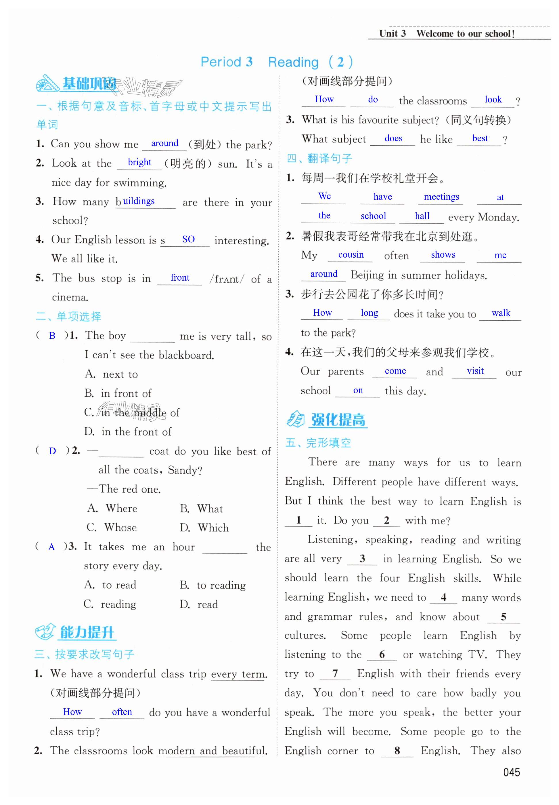 注:目前有些书本章节名称可能整理的还不是很完善,但都是按照顺序排列的,请同学们按照顺序仔细查找。练习册 2024年随堂练1加2七年级英语上册译林版 答案主要是用来给同学们做完题方便对答案用的,请勿直接抄袭。