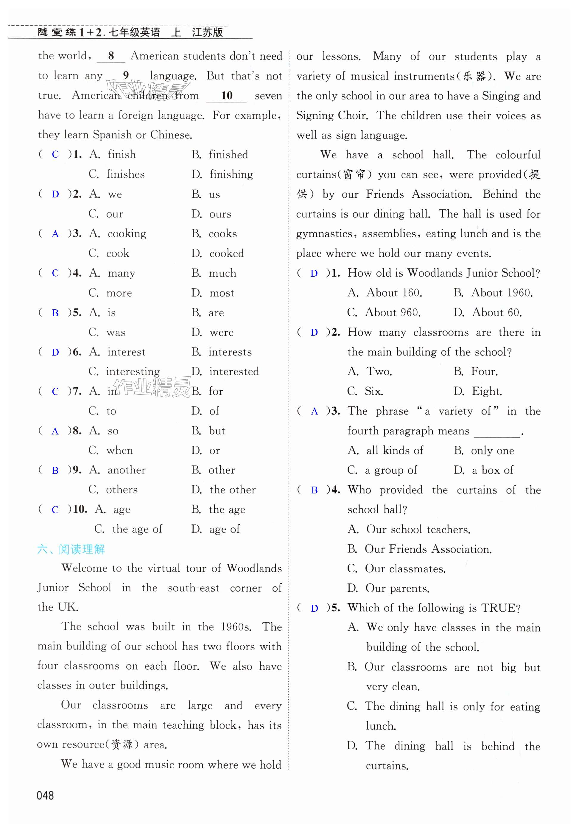 注:目前有些书本章节名称可能整理的还不是很完善,但都是按照顺序排列的,请同学们按照顺序仔细查找。练习册 2024年随堂练1加2七年级英语上册译林版 答案主要是用来给同学们做完题方便对答案用的,请勿直接抄袭。
