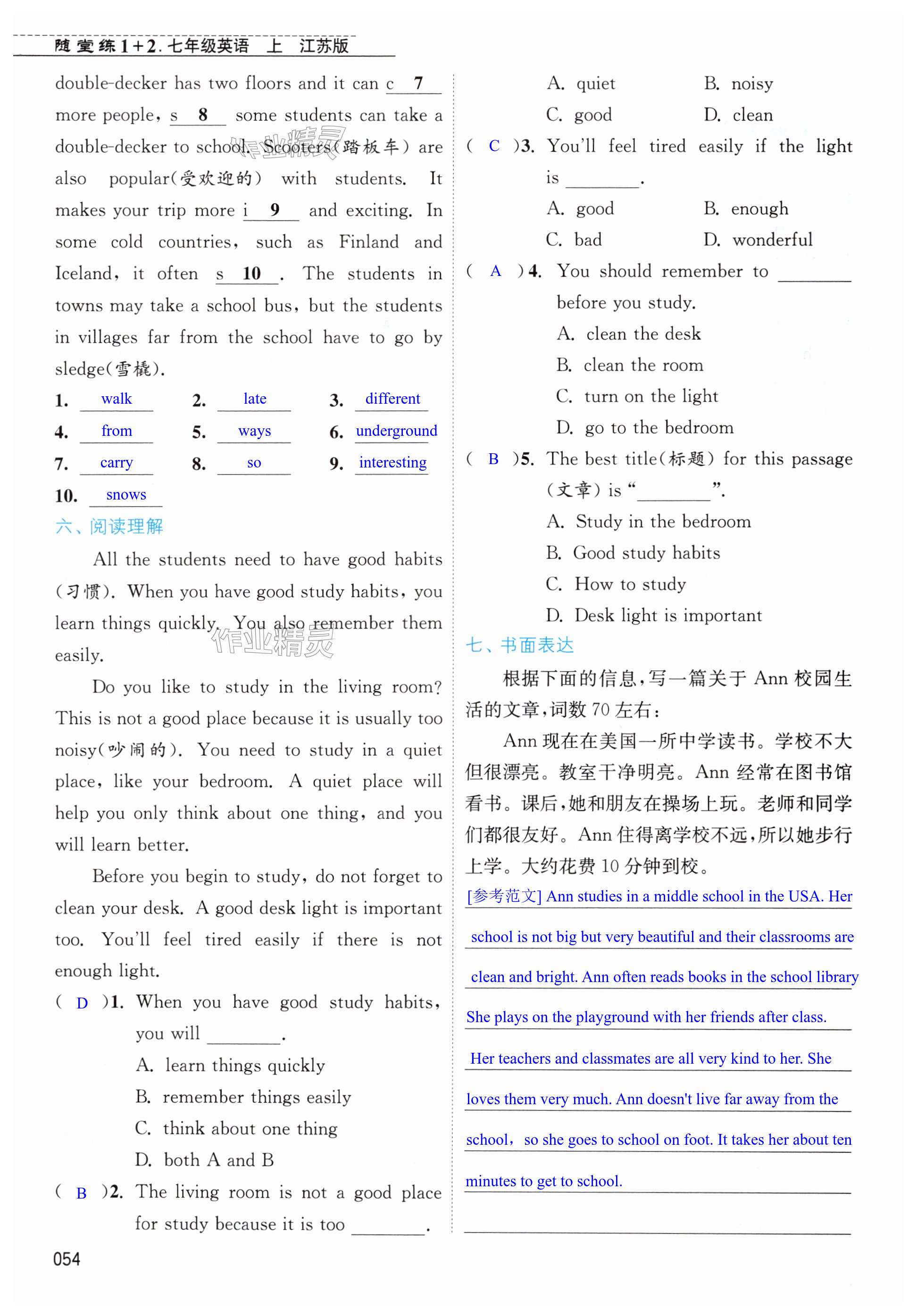 注:目前有些书本章节名称可能整理的还不是很完善,但都是按照顺序排列的,请同学们按照顺序仔细查找。练习册 2024年随堂练1加2七年级英语上册译林版 答案主要是用来给同学们做完题方便对答案用的,请勿直接抄袭。