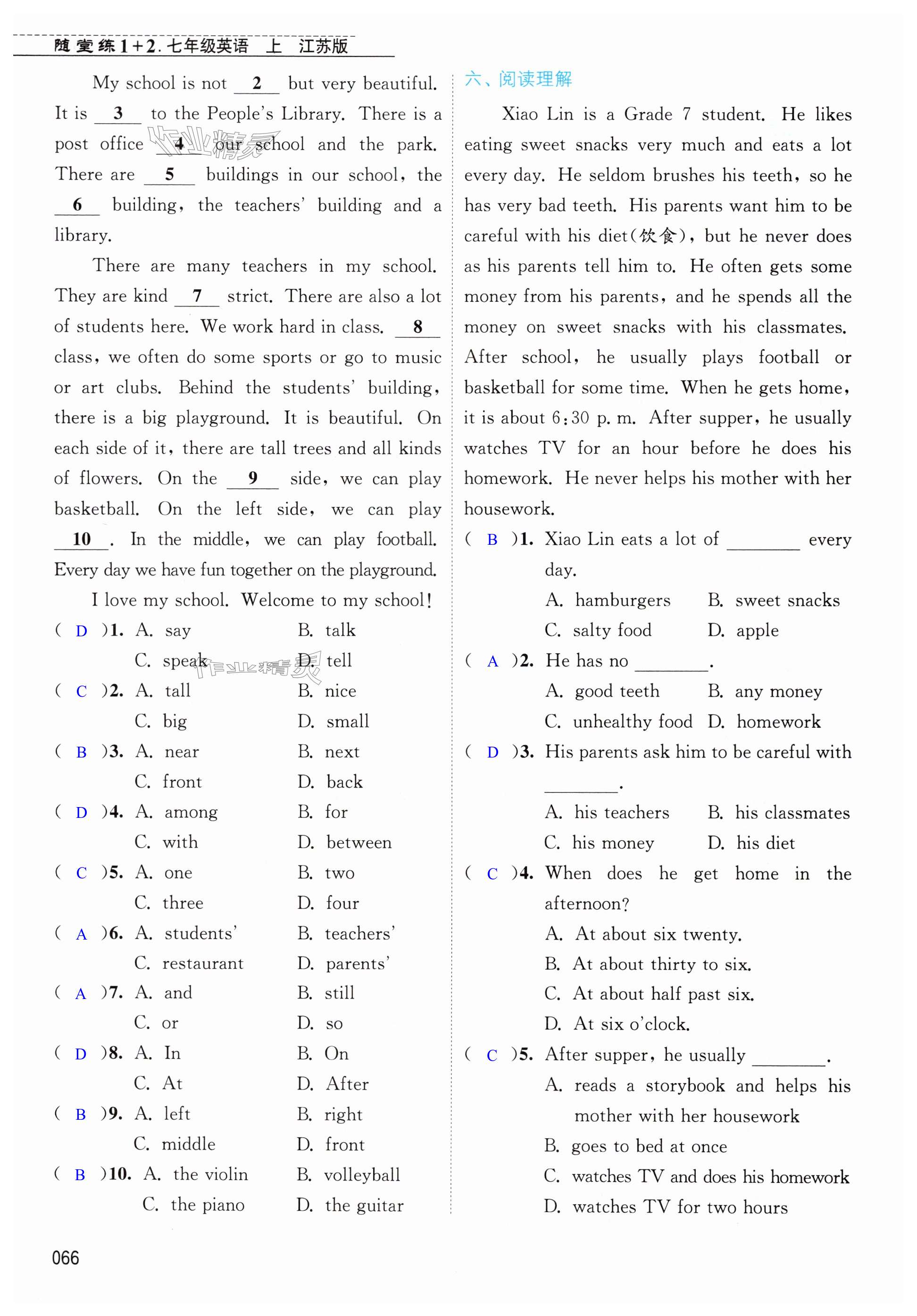 注:目前有些书本章节名称可能整理的还不是很完善,但都是按照顺序排列的,请同学们按照顺序仔细查找。练习册 2024年随堂练1加2七年级英语上册译林版 答案主要是用来给同学们做完题方便对答案用的,请勿直接抄袭。