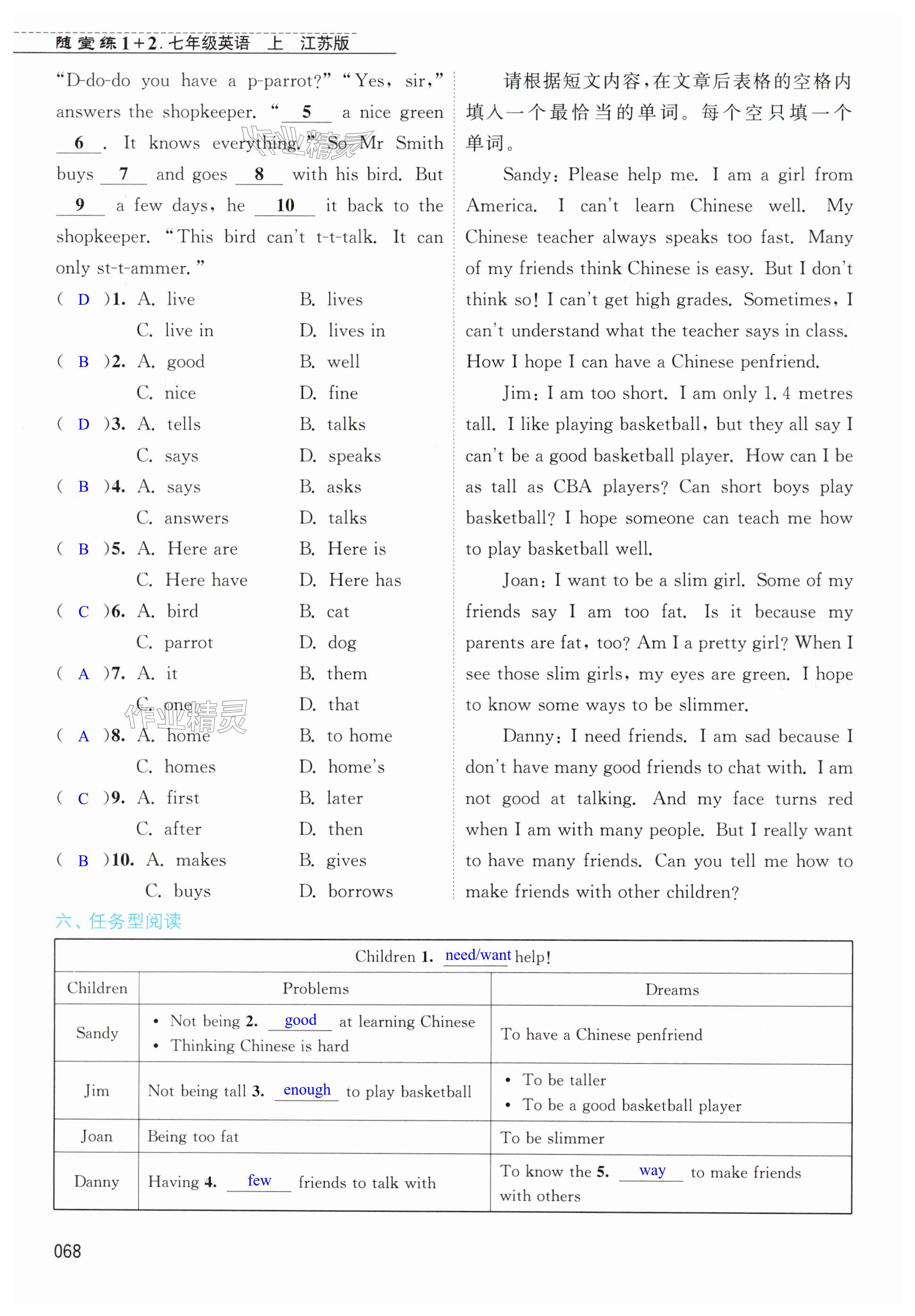 注:目前有些书本章节名称可能整理的还不是很完善,但都是按照顺序排列的,请同学们按照顺序仔细查找。练习册 2024年随堂练1加2七年级英语上册译林版 答案主要是用来给同学们做完题方便对答案用的,请勿直接抄袭。