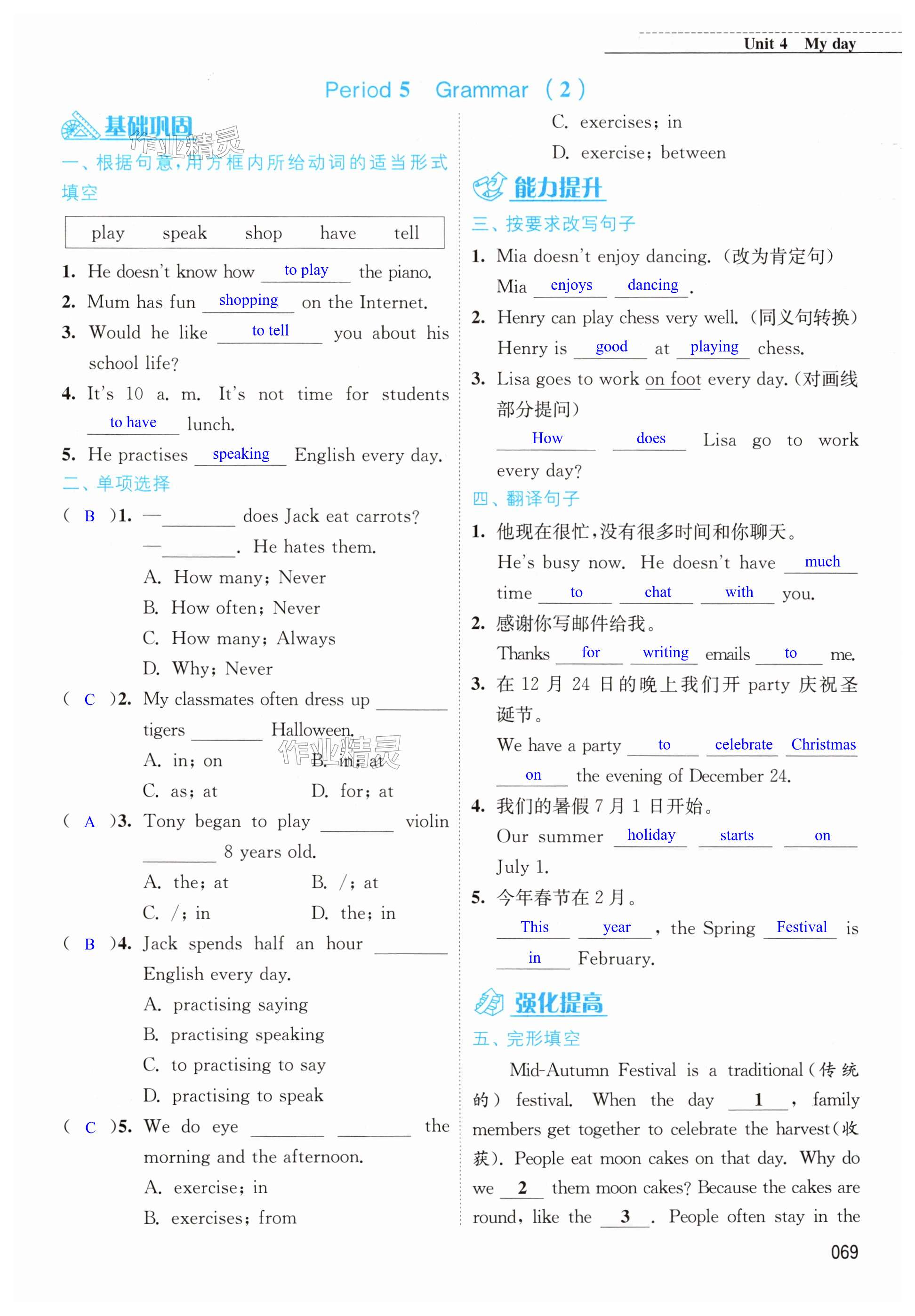 注:目前有些书本章节名称可能整理的还不是很完善,但都是按照顺序排列的,请同学们按照顺序仔细查找。练习册 2024年随堂练1加2七年级英语上册译林版 答案主要是用来给同学们做完题方便对答案用的,请勿直接抄袭。