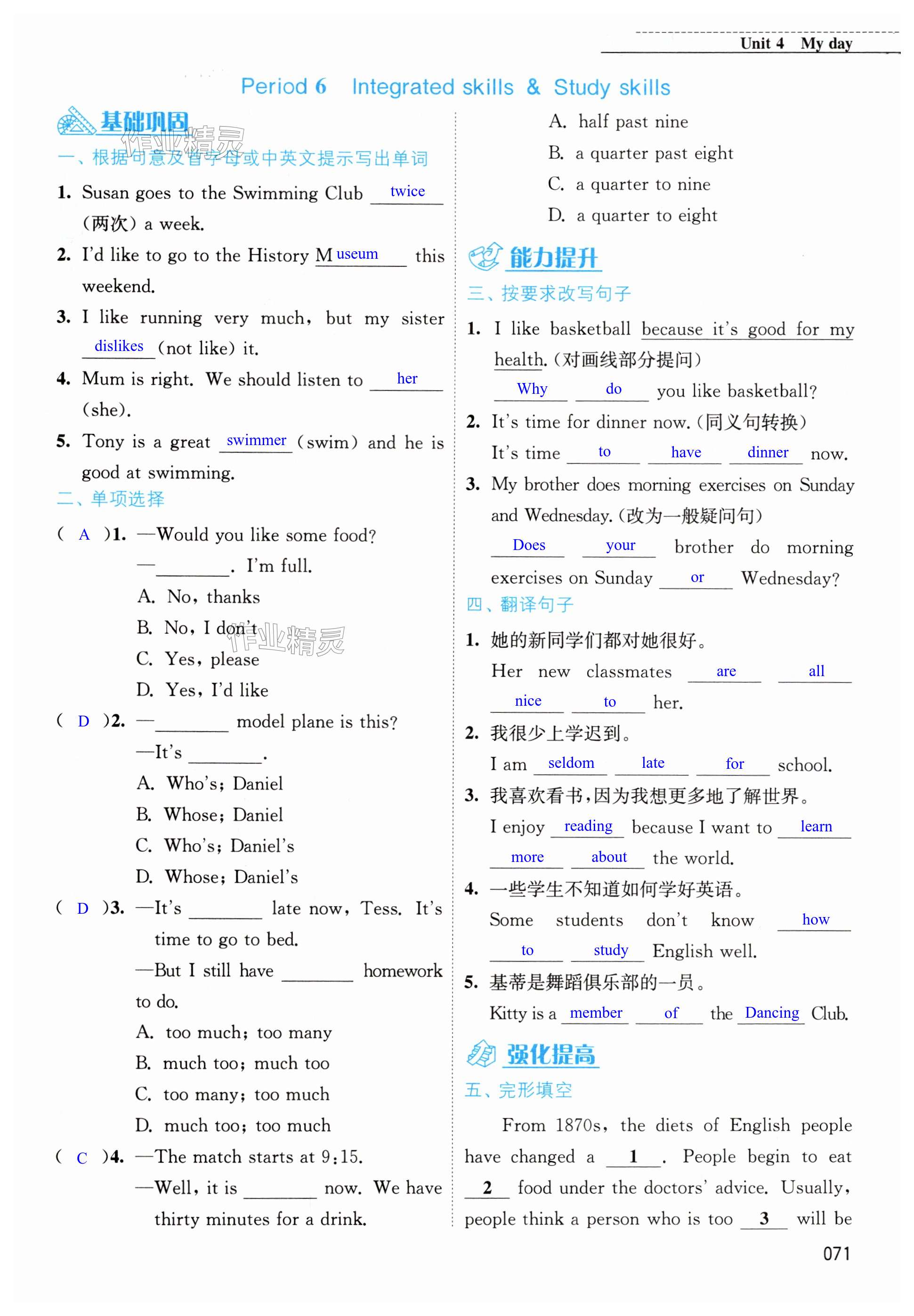 注:目前有些书本章节名称可能整理的还不是很完善,但都是按照顺序排列的,请同学们按照顺序仔细查找。练习册 2024年随堂练1加2七年级英语上册译林版 答案主要是用来给同学们做完题方便对答案用的,请勿直接抄袭。